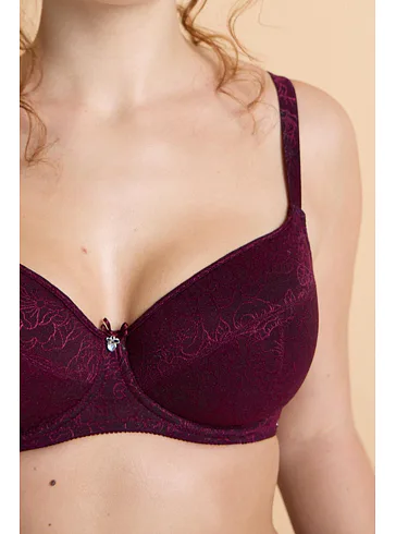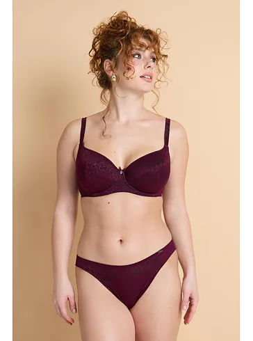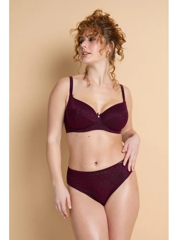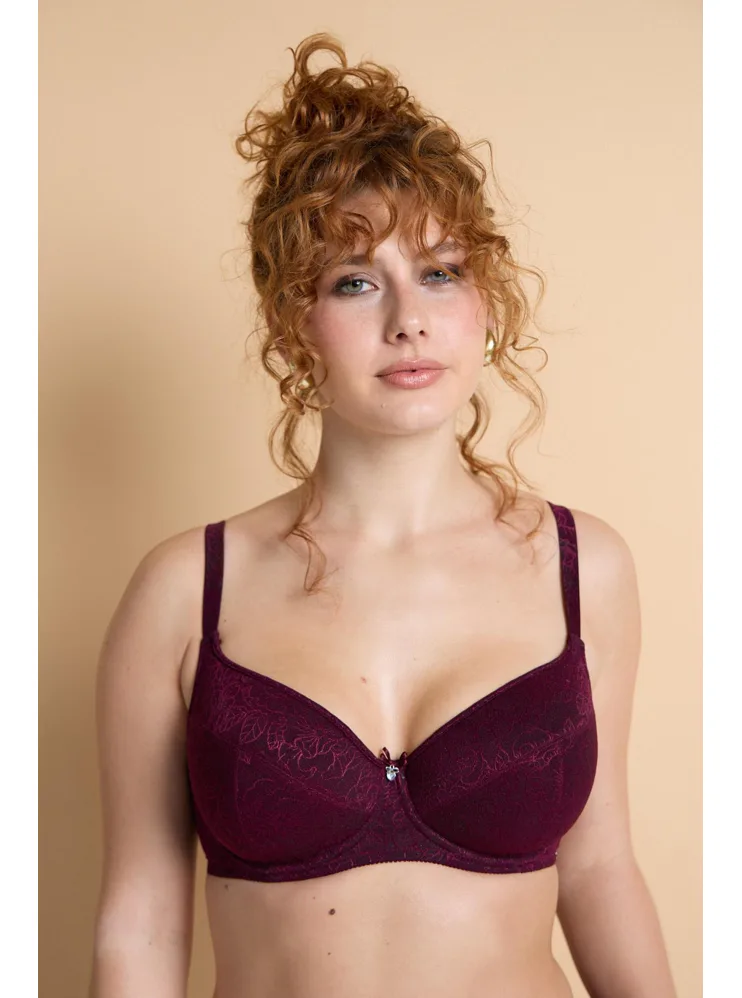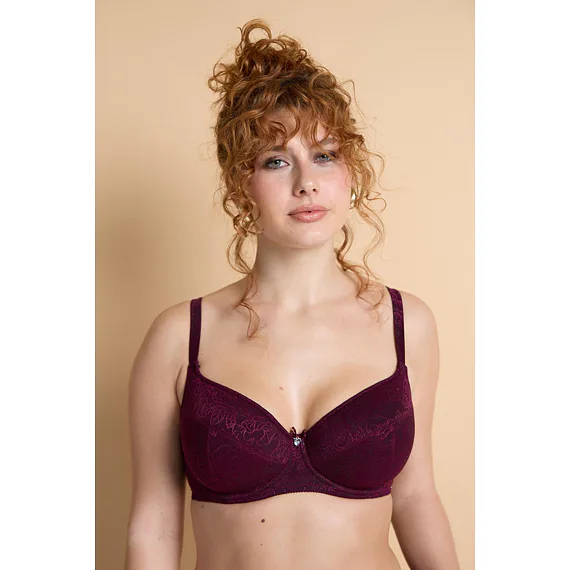 V limitované kolekci Souznění nově naleznete tence vyztuženou podprsenku z exkluzivního žakárového úpletu ve smyslné bordó barvě. Uchvátí vás bohatým vzorem a lesklými konturami.