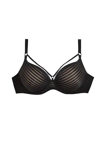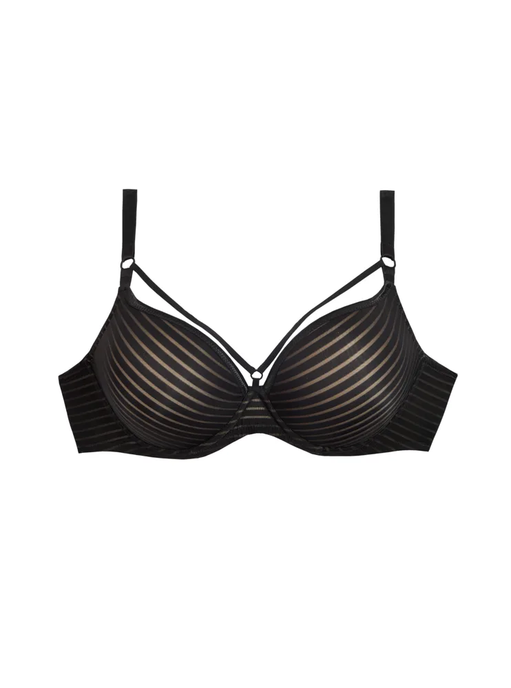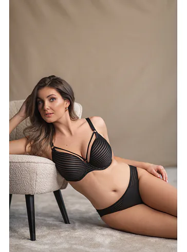 Hladká podprsenka zaujme sexy pásky, které jí dodávají šmrnc. Poskytne potřebnou oporu a dokonale se přizpůsobí vašim křivkám. Úplet černé podprsenky využívá efekt střídajících se plných a průsvitných proužků, které vytváří elegantní vzhled.