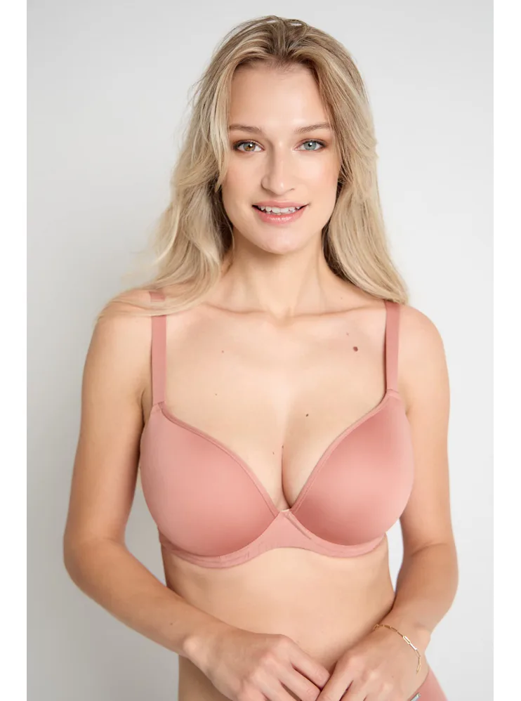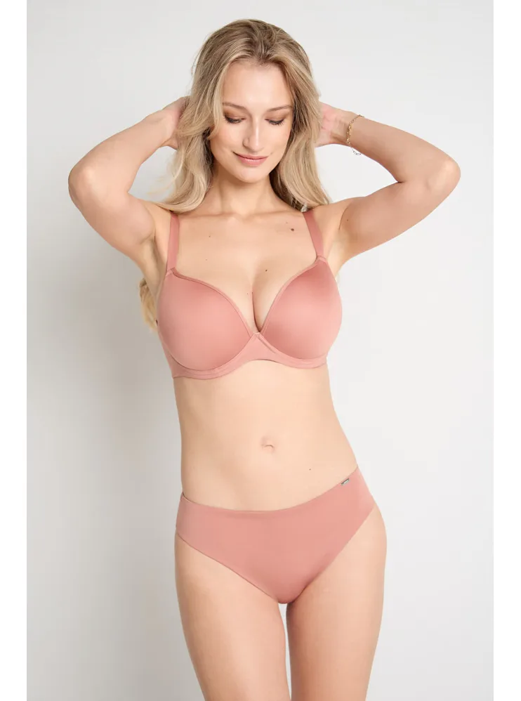 Tence vyztužená podprsenka Vivi s kosticemi zaujme měděnou barvou a hladkým provedením. Ultra hladký úplet působí na těle jako druhá kůže. Podprsenka ve střihu Top-Fit poprsí zafixuje na středu a krásně pozvedne. Přizpůsobí se vašemu pohybu a podtrhne ženské křivky. Nerýsuje se pod oblečením a potažená ramínka se nezařezávají. Doporučujeme ji doplnit o měděné brazilky do setu , se kterými vytvoříte elegantní a sladěný komplet.