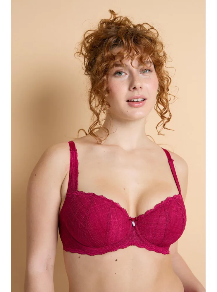 Ženy, představujeme vám elegantní podprsenku z nové limitované kolekce Souznění. Podprsenka v zářivé karmínové barvě ve střihu Sexy-Fit potěší majitelky menšího a středního poprsí.