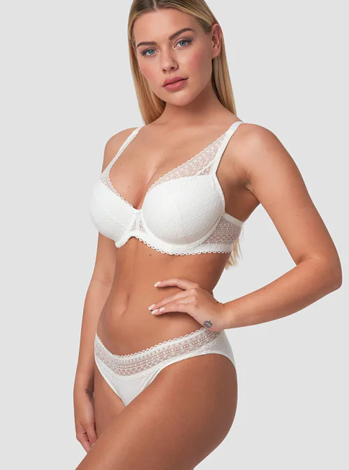 Dopřejte si pocit jistoty a ženské elegance ve vyztužené podprsence s kosticemi, která je navržena pro perfektní oporu a krásně tvarovaný dekolt. Celou podprsenku zdobí luxusní krajka s jemným vzorem, která působí romanticky a nadčasově.