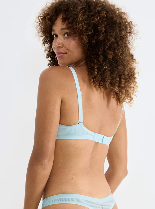 Bezkosticová push-up podprsenka opticky zvětší vaše poprsí a zajistí maximální pohodlí. Zachová přirozený tvar prsou a vytvoří lichotivý dekolt. Modrá braletka s nízkým středem je vyrobena z příjemného, prodyšného materiálu, ideální volba na celodenní nošení.