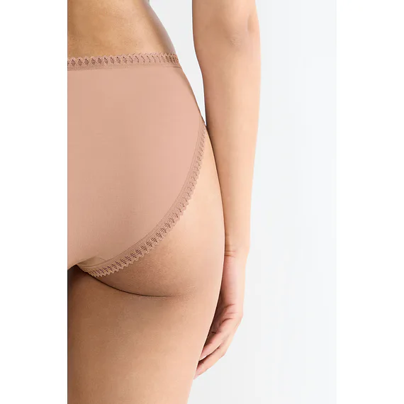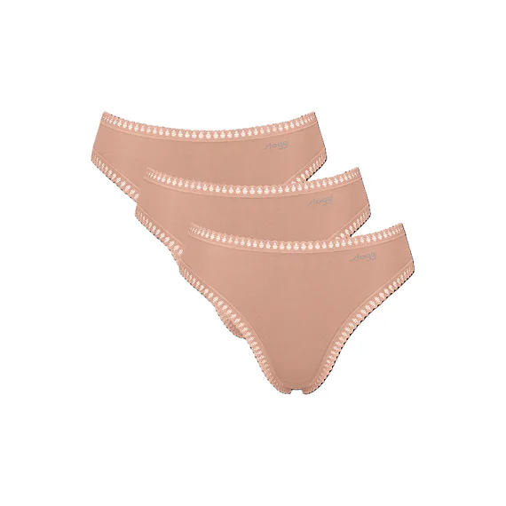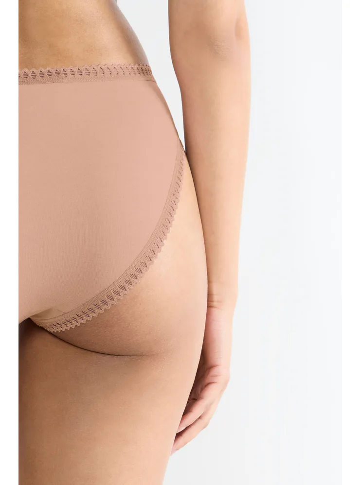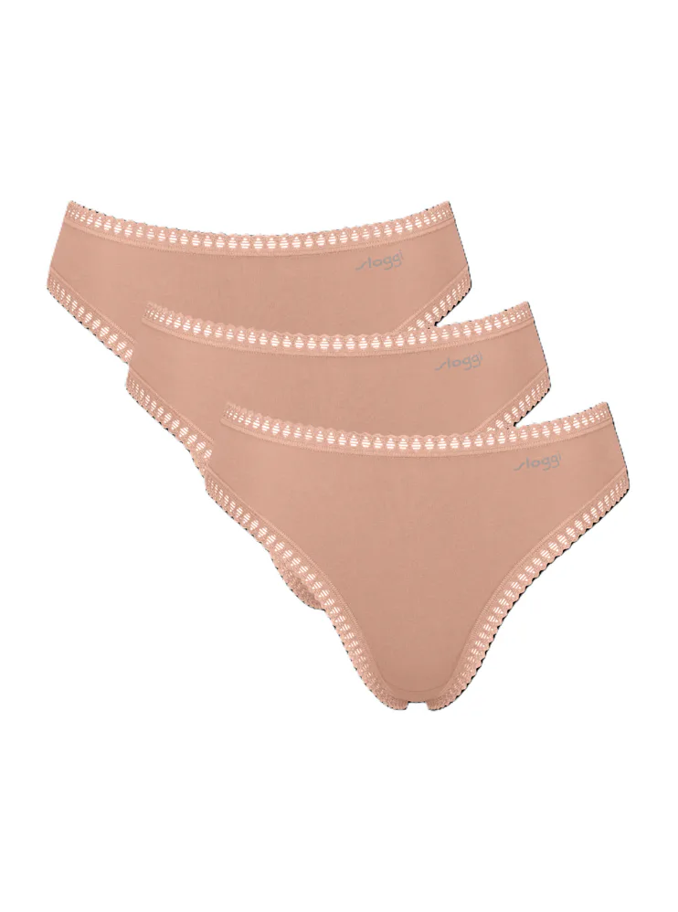 Dámské kalhotky klasického střihu jsou ideální na každodenní nošení. Béžové kalhotky lemované ozdobnou výšivkou poskytují maximální komfort, perfektně sedí a zakryjí vaše pozadí. Pořiďte si výhodnou sadu tří kusů.