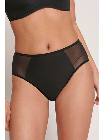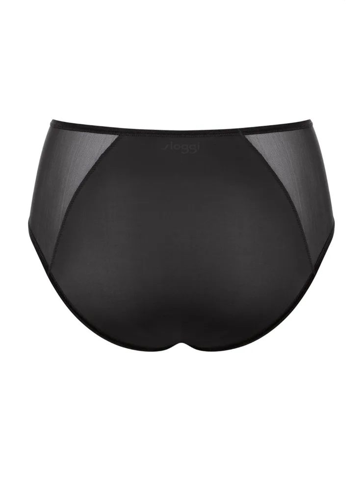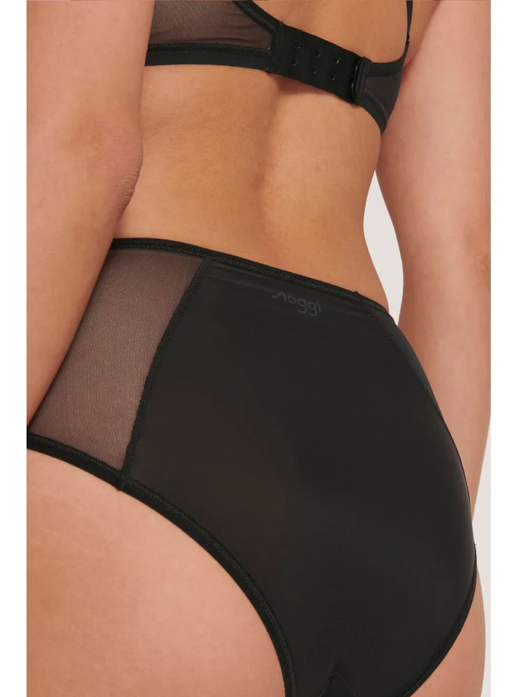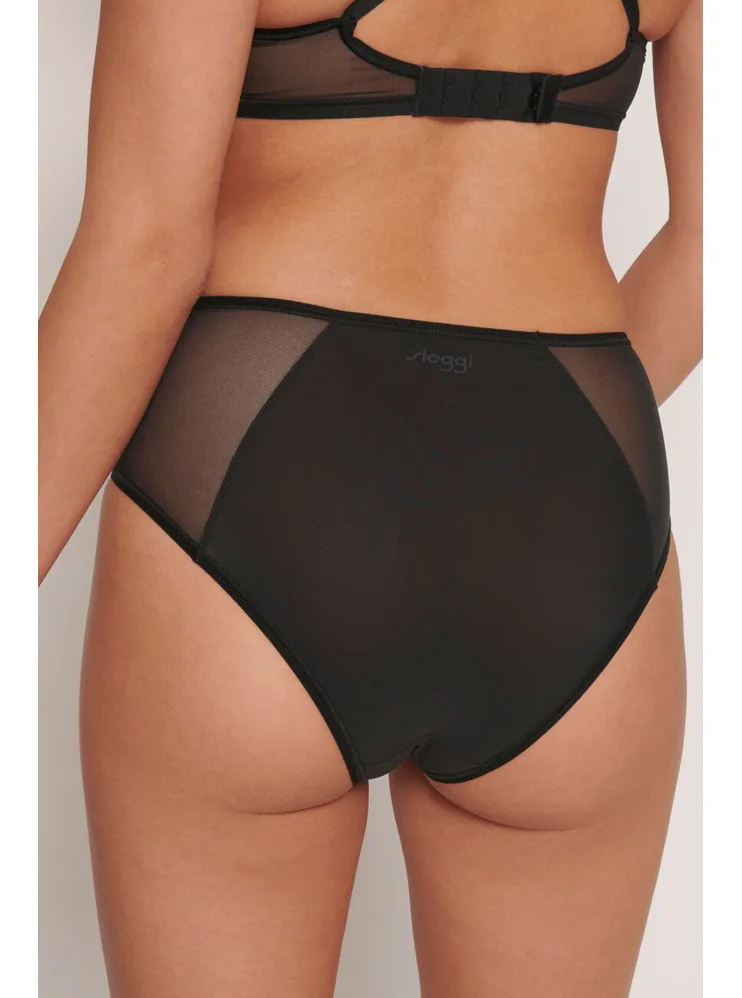 Kalhotky se zvýšeným pasem od značky Sloggi jsou ideální pro ženy, které mají výraznější boky či oblast bříška a hledají pohodlné a zároveň atraktivní spodní prádlo. Kalhotky mají hladký zadeček a na bocích je zdobí průhledná síťovina, která jim dodává jemnou smyslnost. Zesílený bavlněný klín zajišťuje pohodlí při nošení a minimalizuje riziko podráždění. Pořiďte si černé kalhotky, které jsou vhodné pro každodenní nošení i speciální příležitosti.