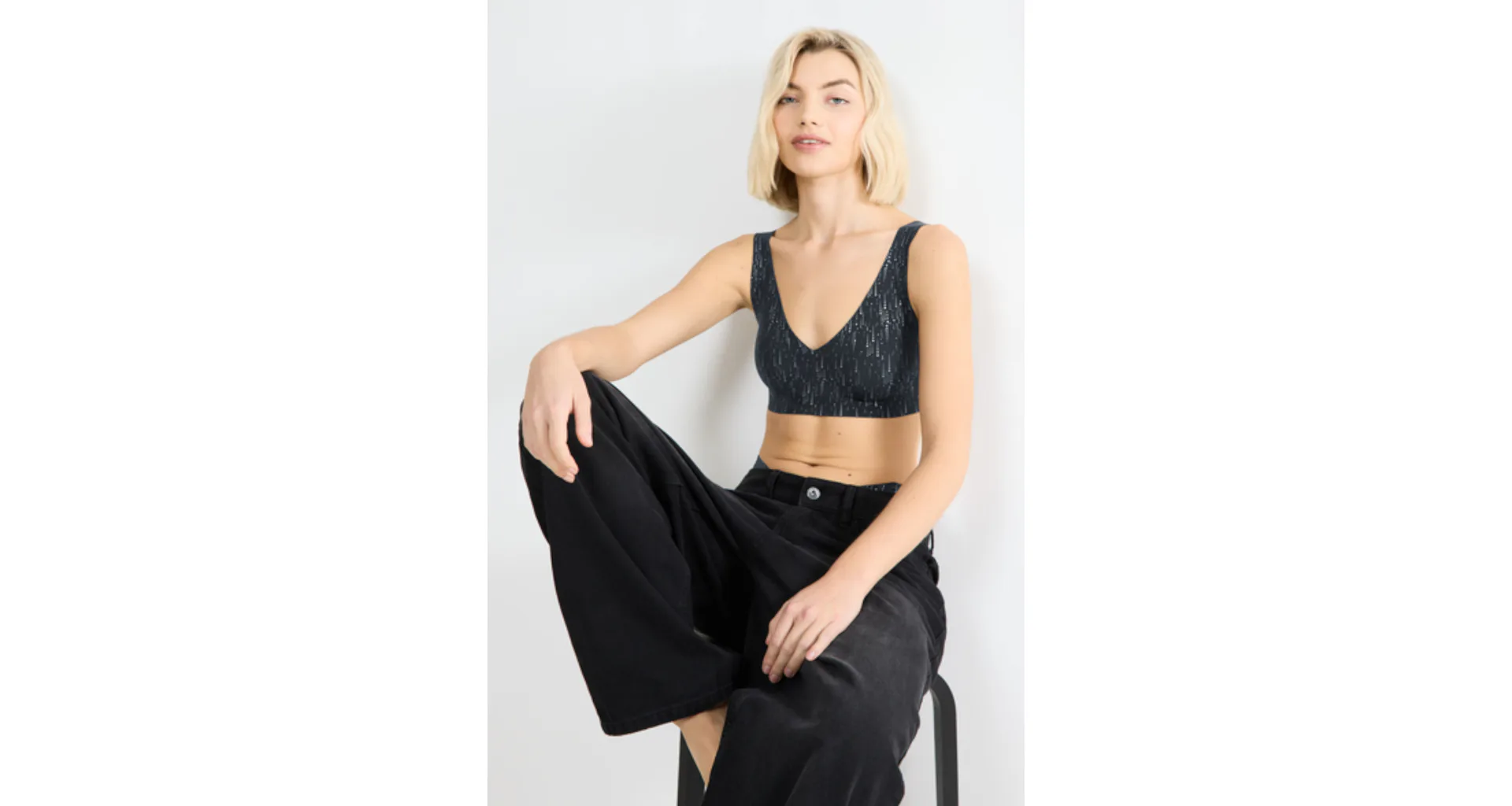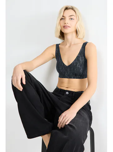 Doporučujeme ji doplnit o vysoké černo-stříbrné kalhotky , které s ní vytvoří moderní a pohodlný komplet.