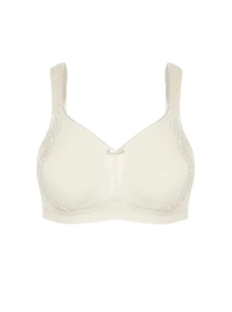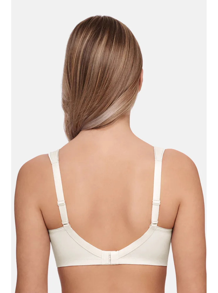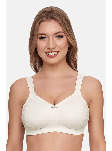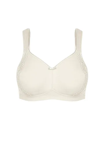 Krémová podprsenka bez kostic zaručuje maximální pohodlí. Širší ramínka pomáhají rovnoměrně rozložit váhu poprsí a nezařezávají se do pokožky. Nevyztužená podprsenka s vysokým středem a širším zadním dílem je optimální pro větší prsa, poskytuje spolehlivou fixaci a komfort při celodenním nošení. Pořiďte si podprsenku, která perfektně obejme vaše ňadra a udrží je pevně na místě.