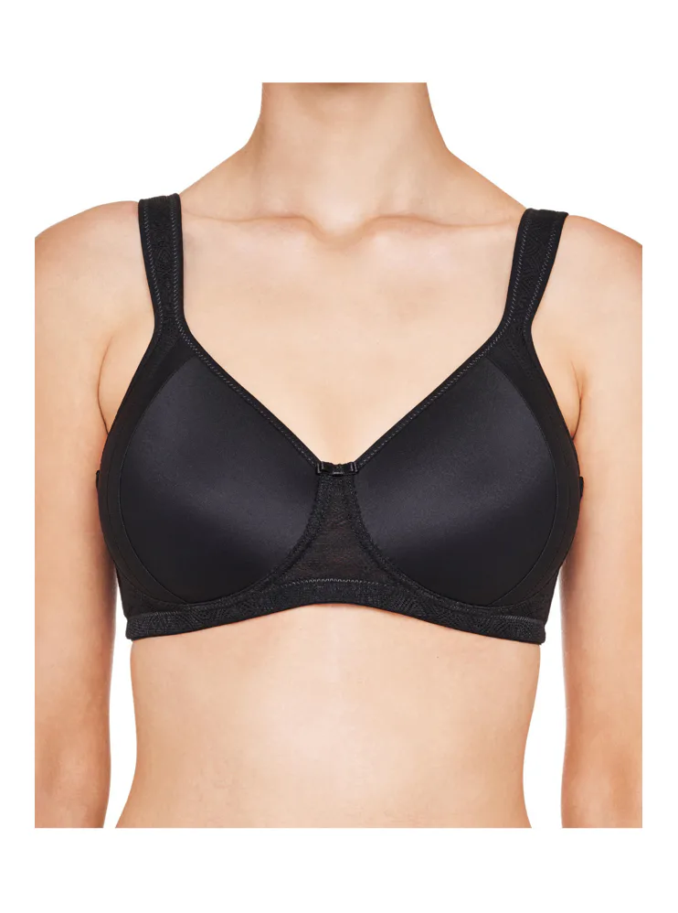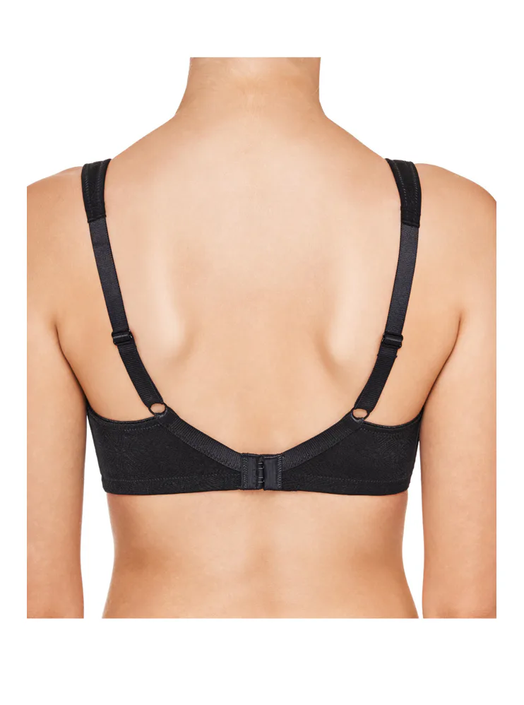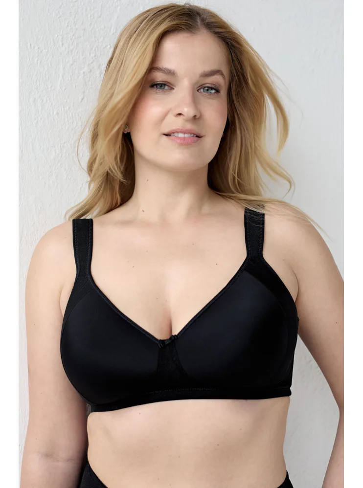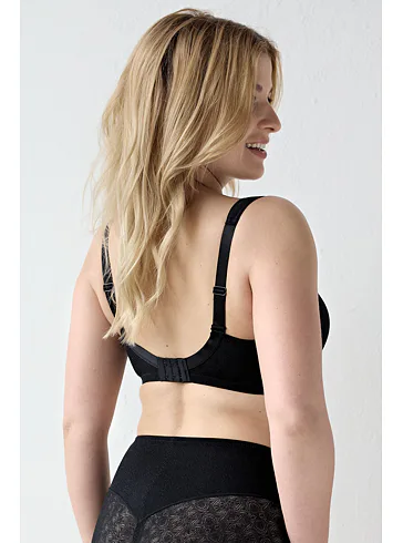 Zmenšovací černá podprsenka opticky zmenší vaše poprsí až o jednu velikost. Zaujme jemnou krajkou, která jí dodává romantický nádech. Má širší ramínka, jež rovnoměrně rozkládají váhu poprsí a zajišťují tak větší komfort a podporu při celodenním nošení. Hladké koše se vám nebudou rýsovat pod přiléhavým oblečením. Zadní zapínání má na dva háčky se čtyřmi polohami stažení. Nechte se hýčkat pohodlím, které si zasloužíte.