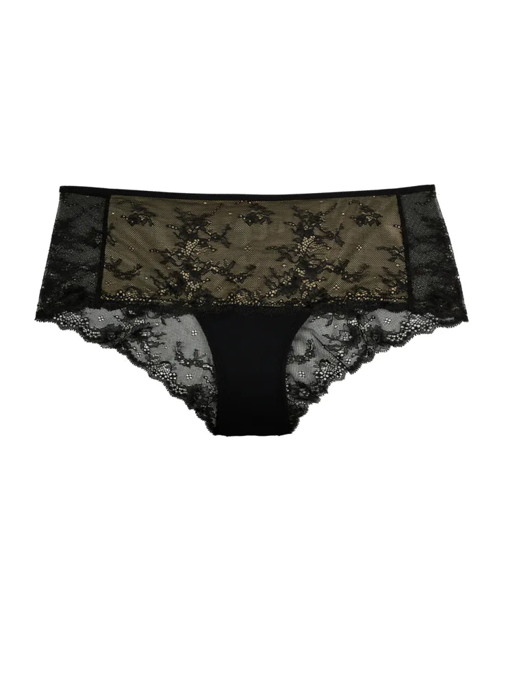 Bokové celokrajkové kalhotky v černé barvě