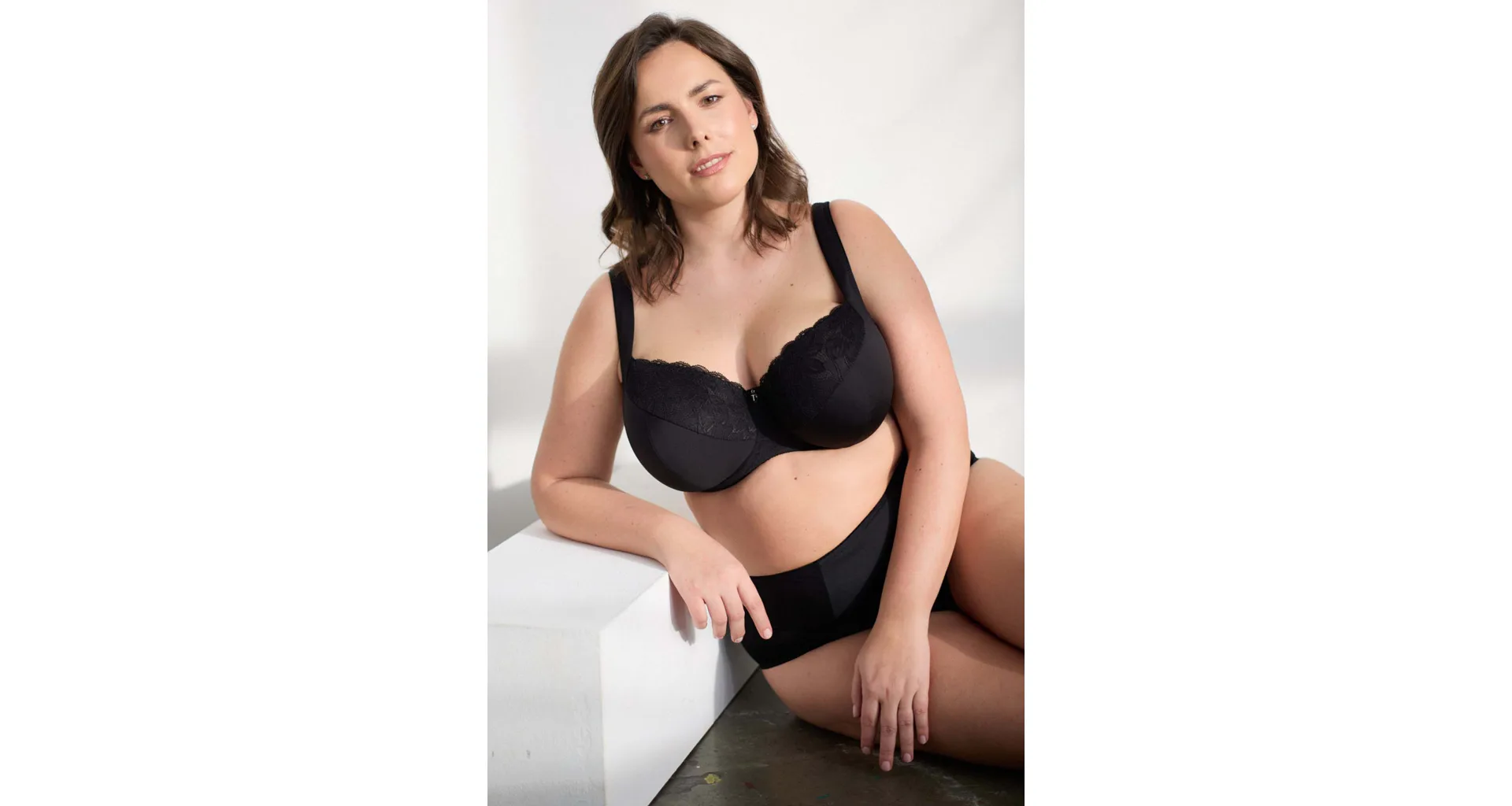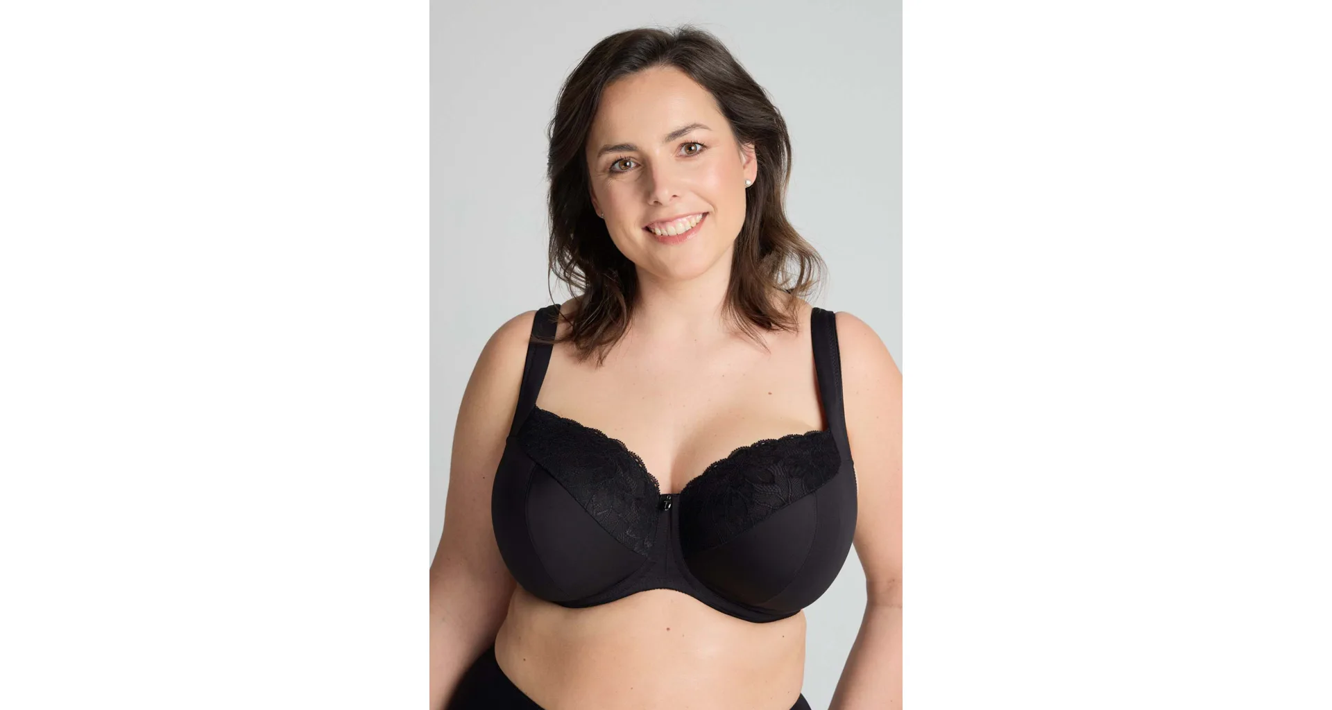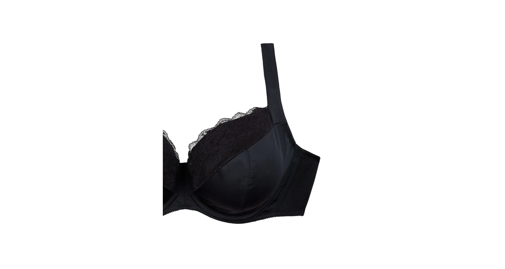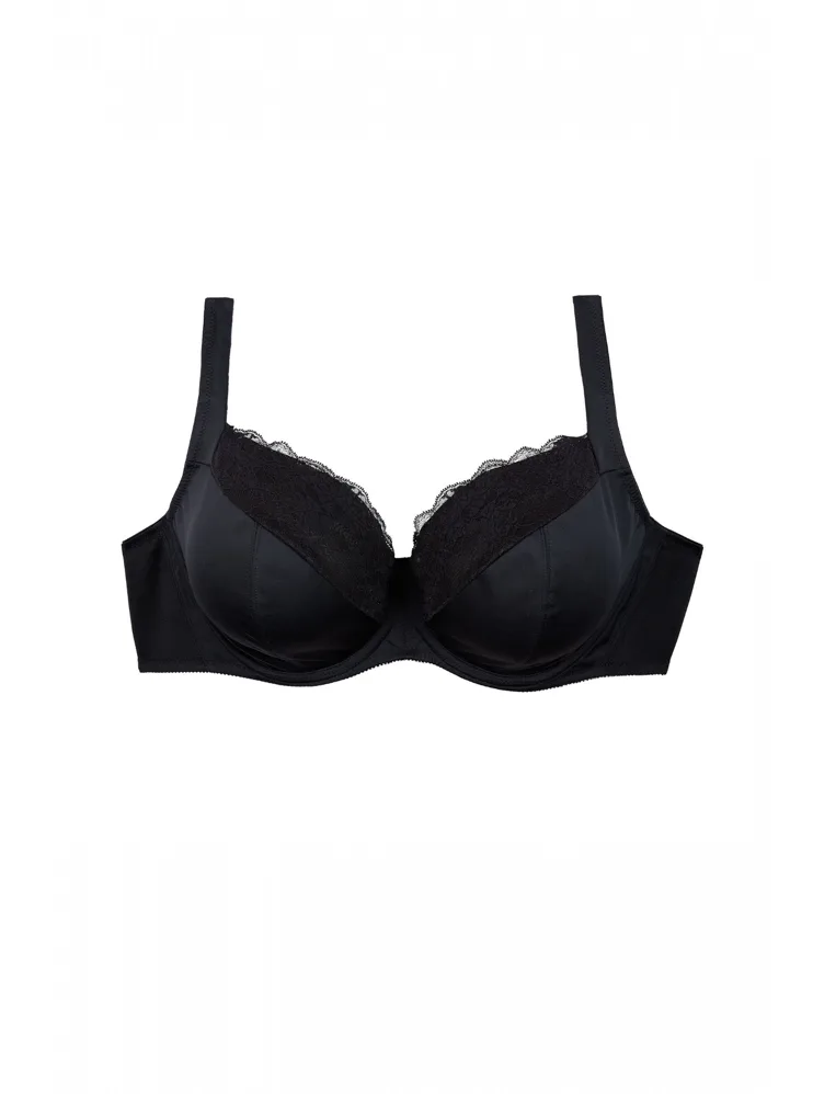 Černá podprsenka ve střihu Comfy-Fit je ideální pro velká a těžká prsa. Krajka ve výstřihu zakryje případnou asymetrii. Zadní díl je vyroben z pevného, funkčního úpletu. Pohodlná, měkce podložená ramínka lze nastavit dle potřeby. Podprsenka prsa zafixuje na středu a přizpůsobí se každému pohybu.