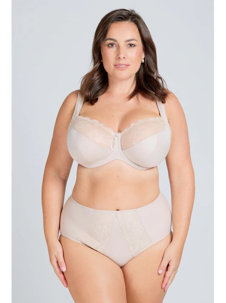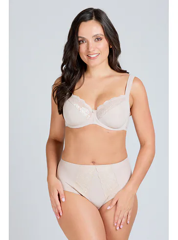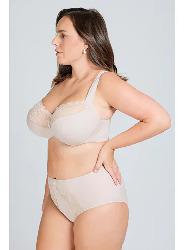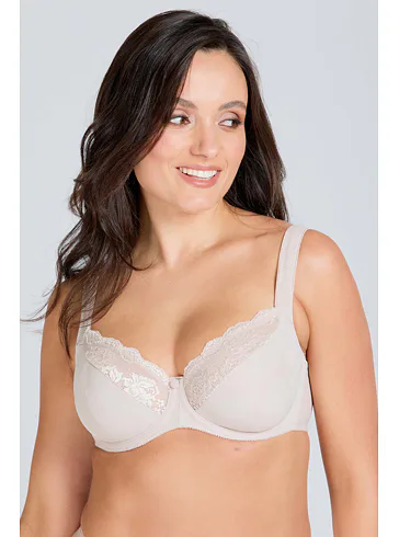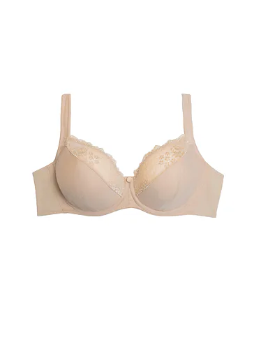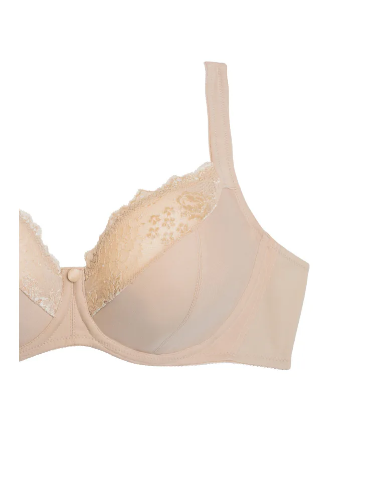 Elegantní podprsenka s nevyztuženými košíčky v béžové barvě vás uchvátí krajkovými detaily, které jí dodávají romantický nádech. Vytvoří přirozený vzhled dekoltu. Flexi kostice se dokonale přizpůsobí každému vašemu pohybu. Ideální volba pro ženy, které hledají kombinaci stylu a vynikající opory.