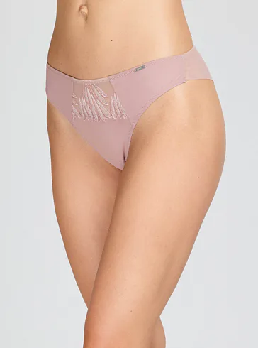 Kalhotky lichotí každé postavě, schovají problematickou oblast bříška a opticky prodlouží nohy. Přední díl zdobí lesklá výšivka. Dvojitý zadní díl bez švů v nohavičkách zajistí, že se kalhotky nerýsují pod oblečením. Vyzkoušejte smyslné brazilky Triola.