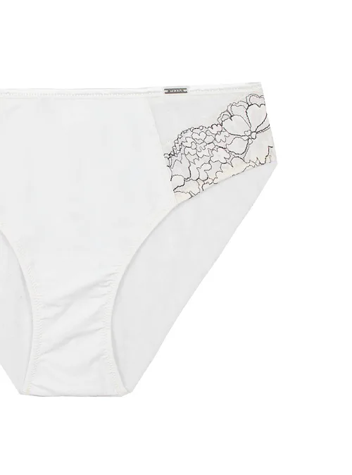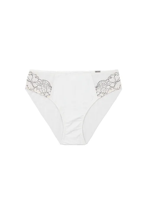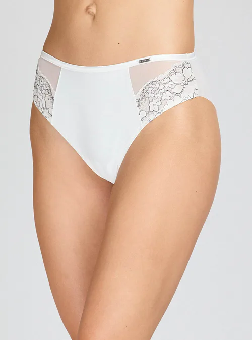 Objevte kombinaci pohodlí a elegance. Bílé kalhotky v oblíbeném klasickém střihu zaujmou dvoubarevnými krajkovými vsadkami a jemnou krajkou. Nadčasové kalhotky dokonale padnou a lichotí každé postavě. Pořiďte si spodní prádlo z nové kolekce Triola.