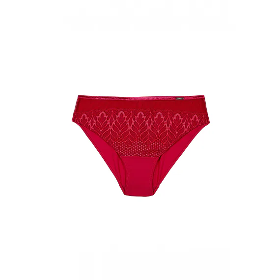 Elegantní dámské kalhotky zaujmou na předním díle něžnou krajkou. Zadní díl je hladký, nerýsuje se pod oblečením. Kalhotky klasického střihu plně schovají vaše pozadí a zajistí maximální pohodlí při celodenním nošení.