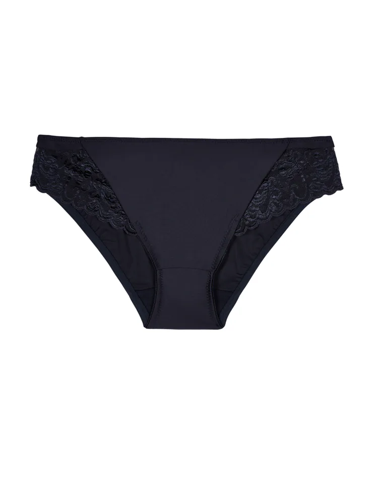 Vsaďte na dokonalou kombinaci pohodlí a elegance. Dámské klasické kalhotky zdobí dvě boční vsadky z prvotřídní efektní krajky a zadní díl je zcela hladký. Modré kalhotky perfektně sednou každé postavě a dodají vám pocit výjimečnosti.
