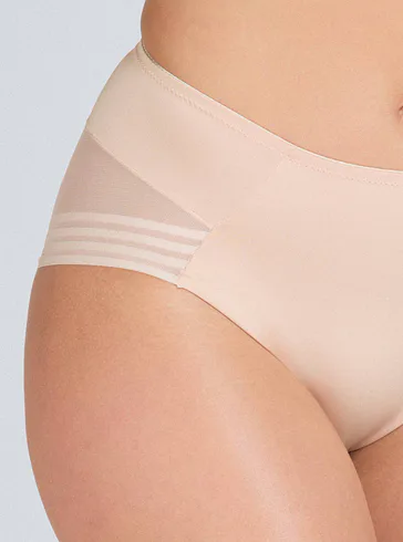 Vyzkoušejte minimalistické kalhotky vysokého střihu, které schovají bříško a přizpůsobí se vašim křivkám. Inovativní úplet na zadním dílu umožňuje zakončení nohaviček bez gumiček, kalhotky se nerýsují pod oblečením a zajišťují maximální pohodlí.