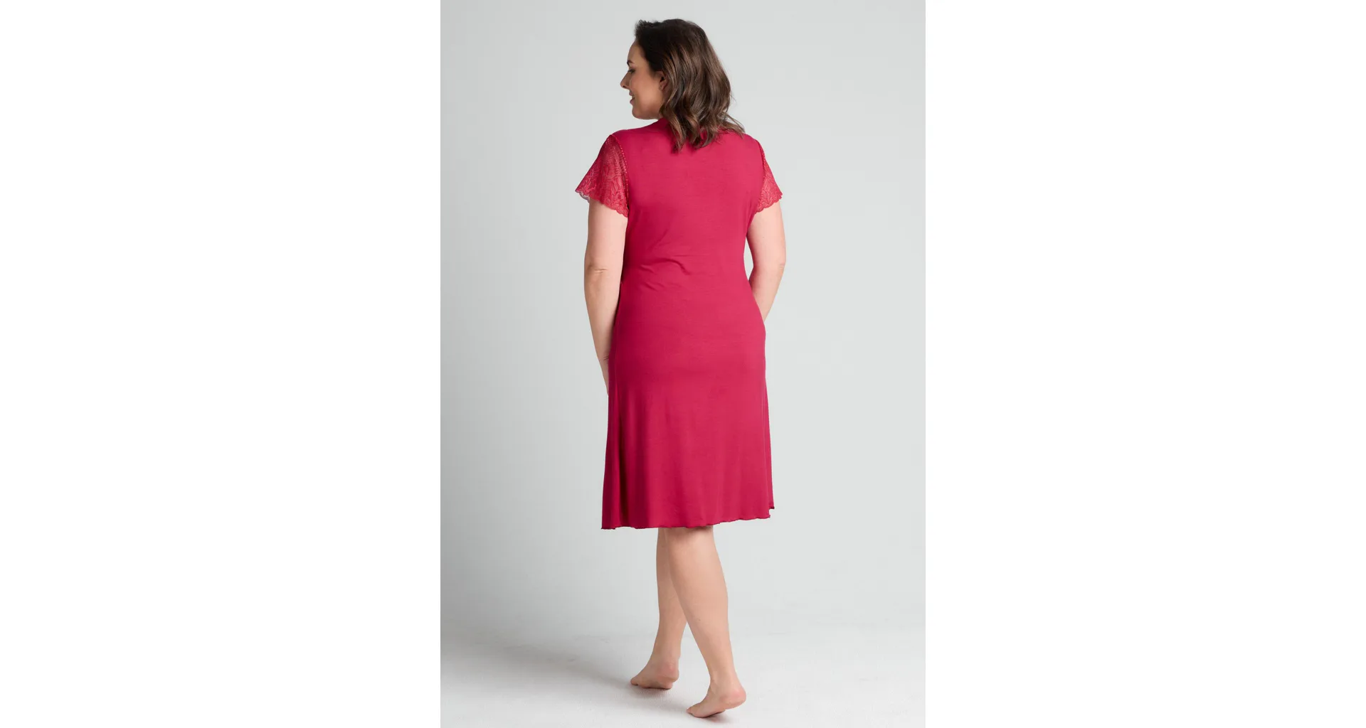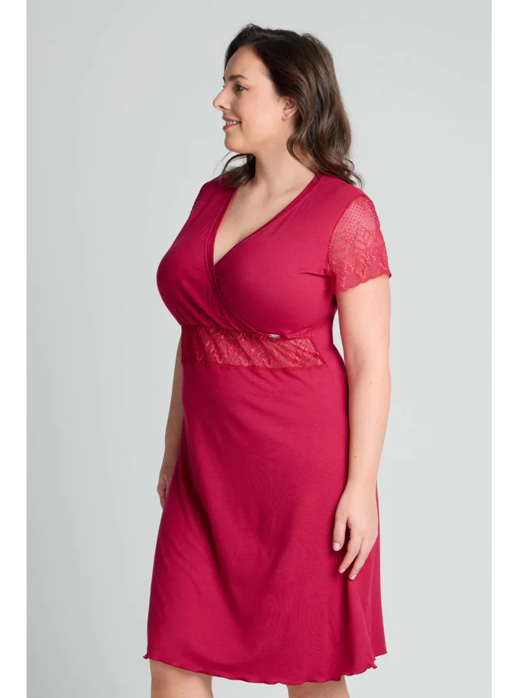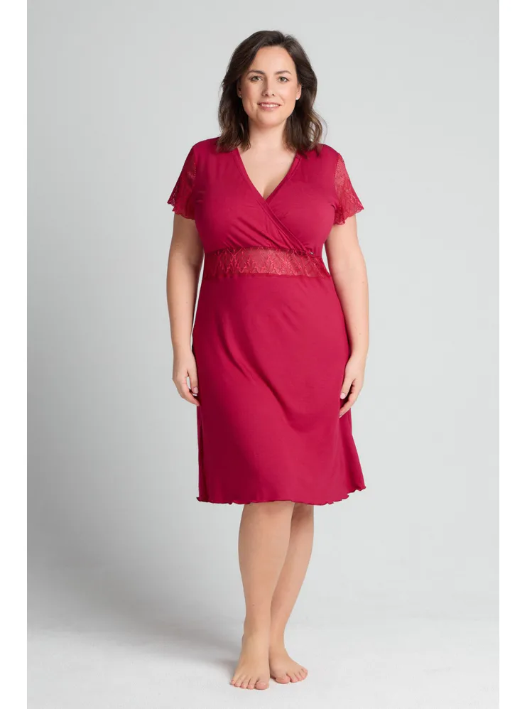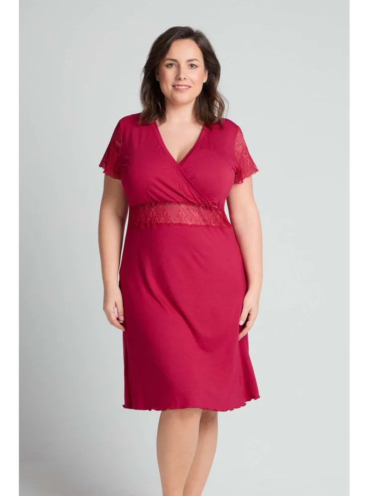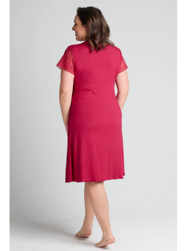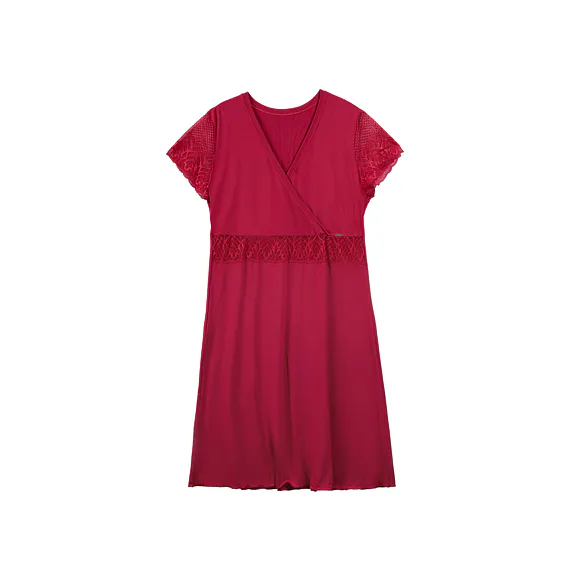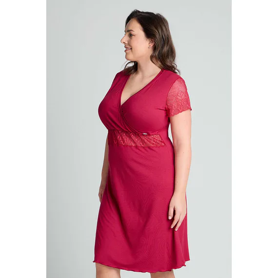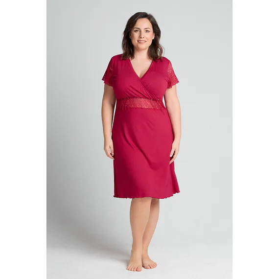 Smyslně červená noční košile poskytuje vysoký komfort při nošení. Díky mikromodalovému vláknu, které je získáno procesem z bukových pilin, vyniká jemností a prodyšností. Košile s krátkým rukávem a délkou ke kolenům je ideální volbou nejen na spaní, ale i jako atraktivní domácí oděv.