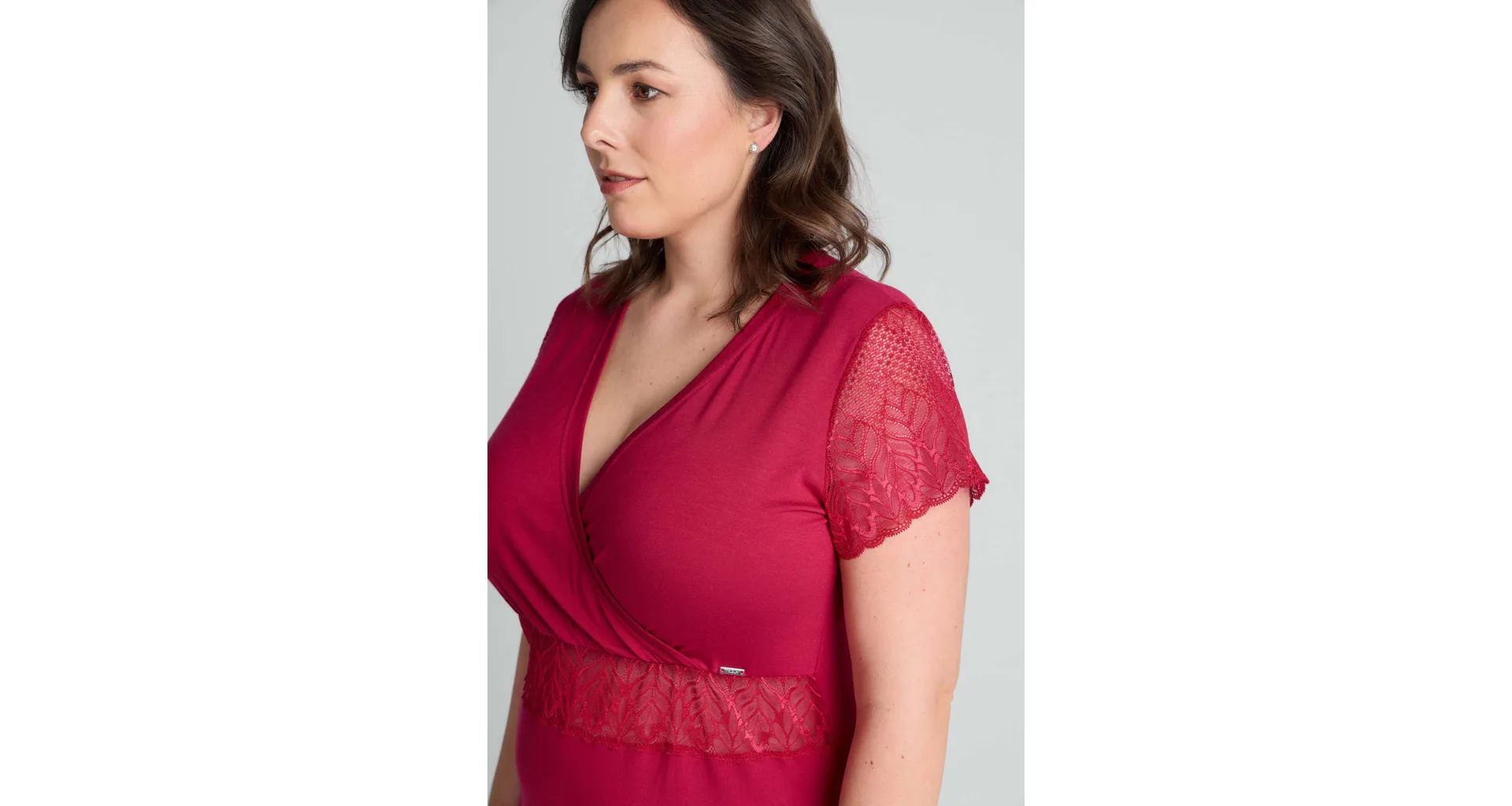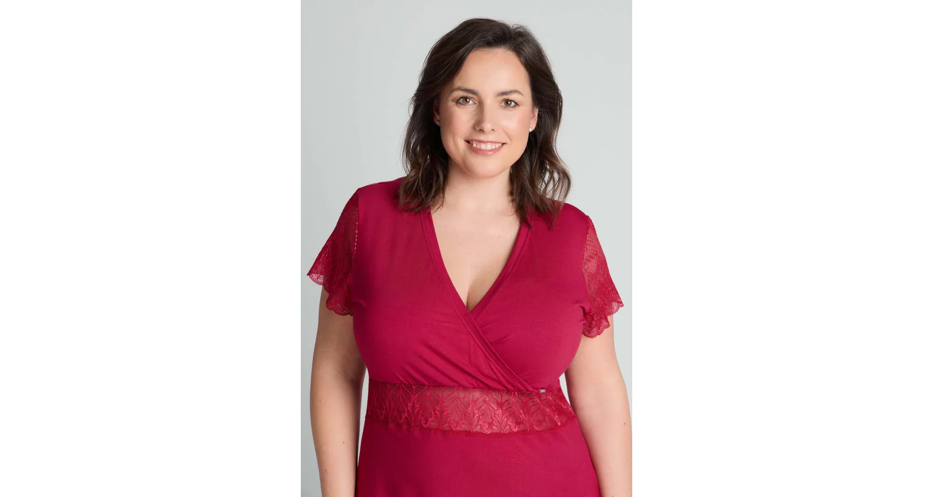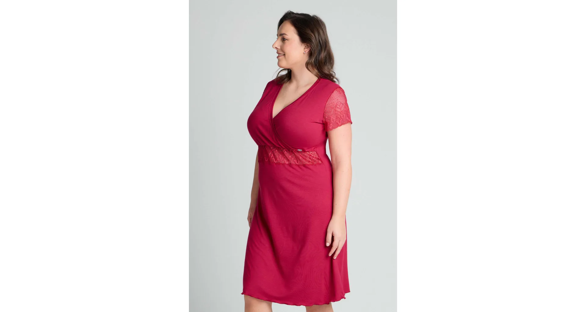 Usínejte a probouzejte se v měkké a splývavé noční košili, která je vyrobena z modalového vlákna. Červená košile zaujme jemnou krajkou pod prsy a na rukávech. Oblíbený střih s křížením ve výstřihu lichotí postavě a působí elegantně.