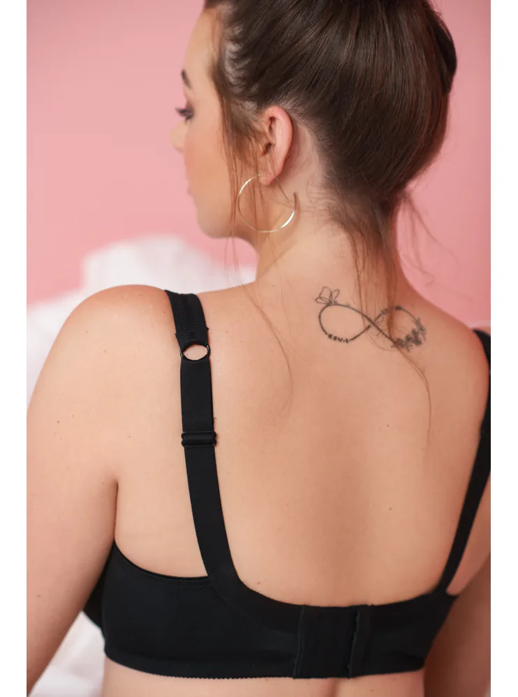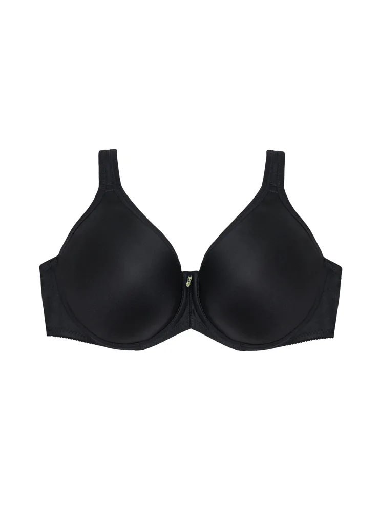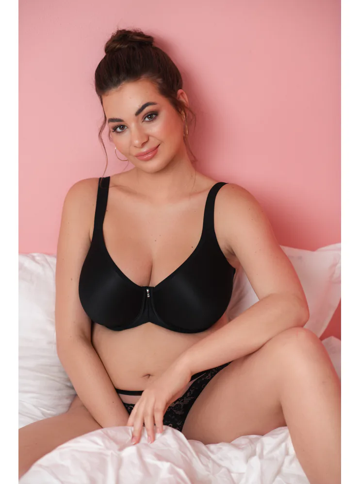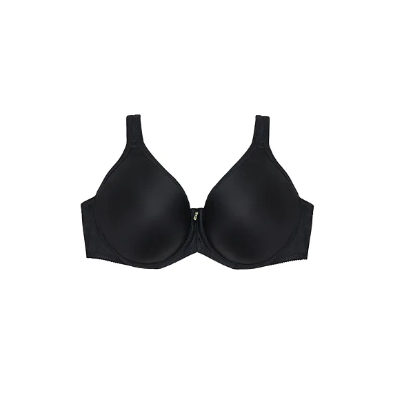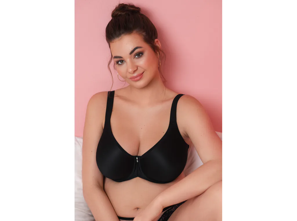 Hladká podprsenka v černé barvě se perfektně přizpůsobí vašim křivkám. Tence vyztužené košíčky vytvoří lichotivý dekolt a zajistí komfort po celý den. Poskytne potřebnou oporu, vhodná na každodenní nošení. Má široká nastavitelná ramínka a zapínání vzadu na háčky. Ideální pro střední a velká prsa.