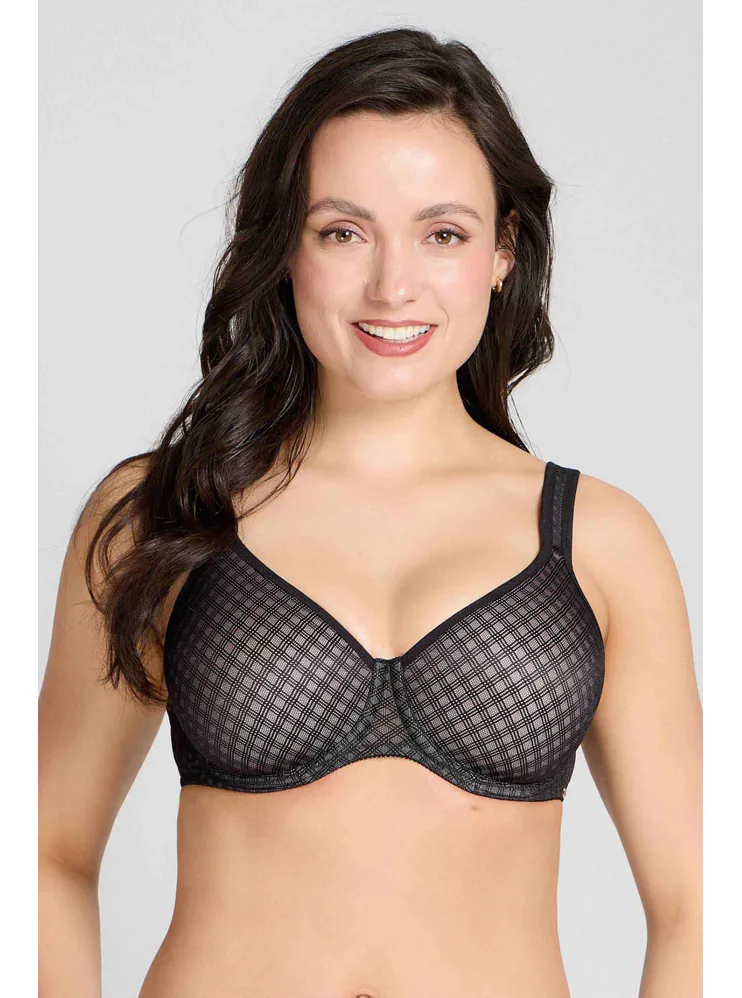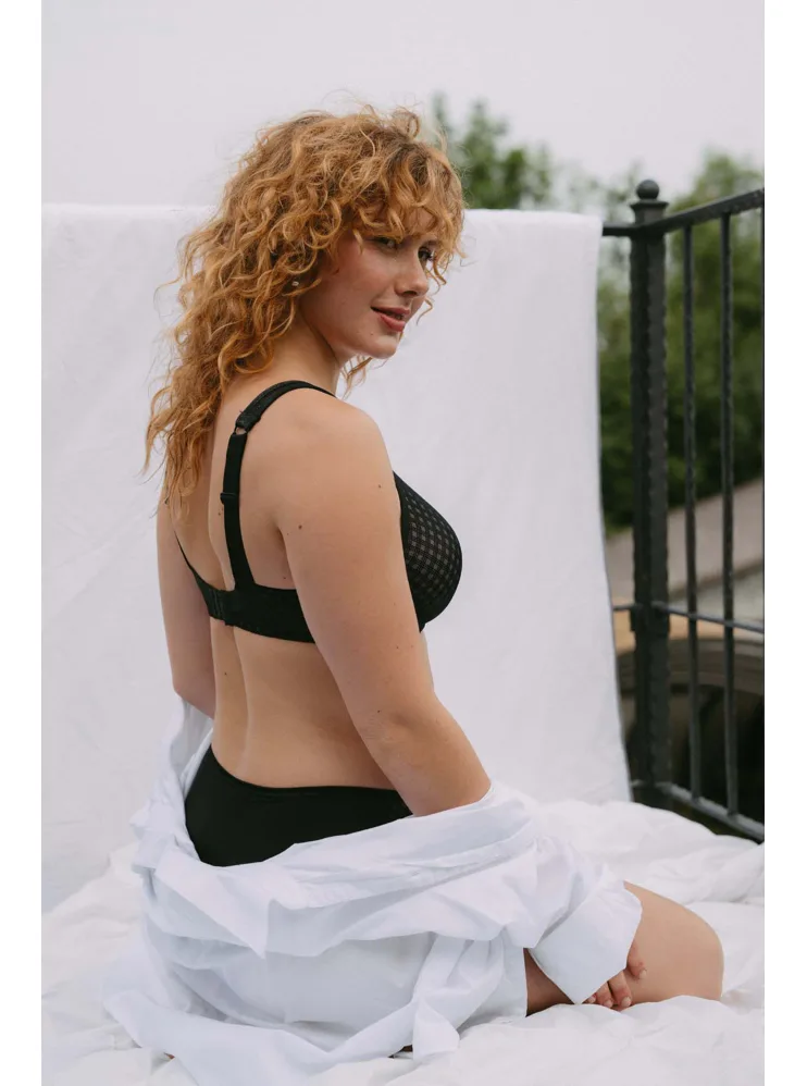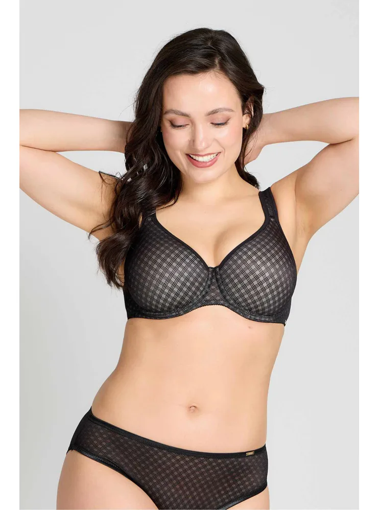 Tence vyztužená podprsenka Mira v oblíbeném střihu Perfect-Fit prsa pozvedne do ideální výšky. Zaujme elegantním úpletem s lesklým efektem a jednoduchým geometrickým vzorem. Vysoký střed a pevný obvod udrží poprsí tam, kde má být.