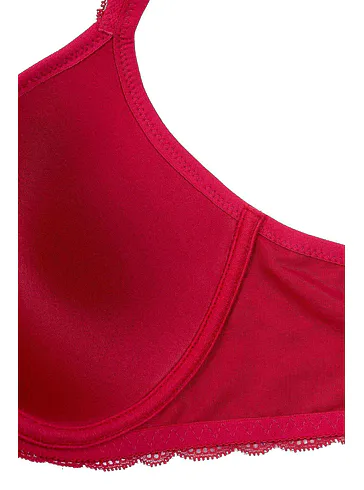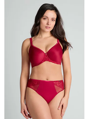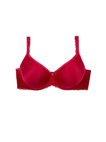 Tence vyztužená podprsenka ve střihu Perfect-Fit má hladké, bezešvé koše s povrchem Ultrafein, které se nerýsují pod oblečením. Červená podprsenka díky vysokému středu a pevnému obvodu udrží poprsí tam, kde má být. Pořiďte si k podprsence i kalhotky ze stejného setu.