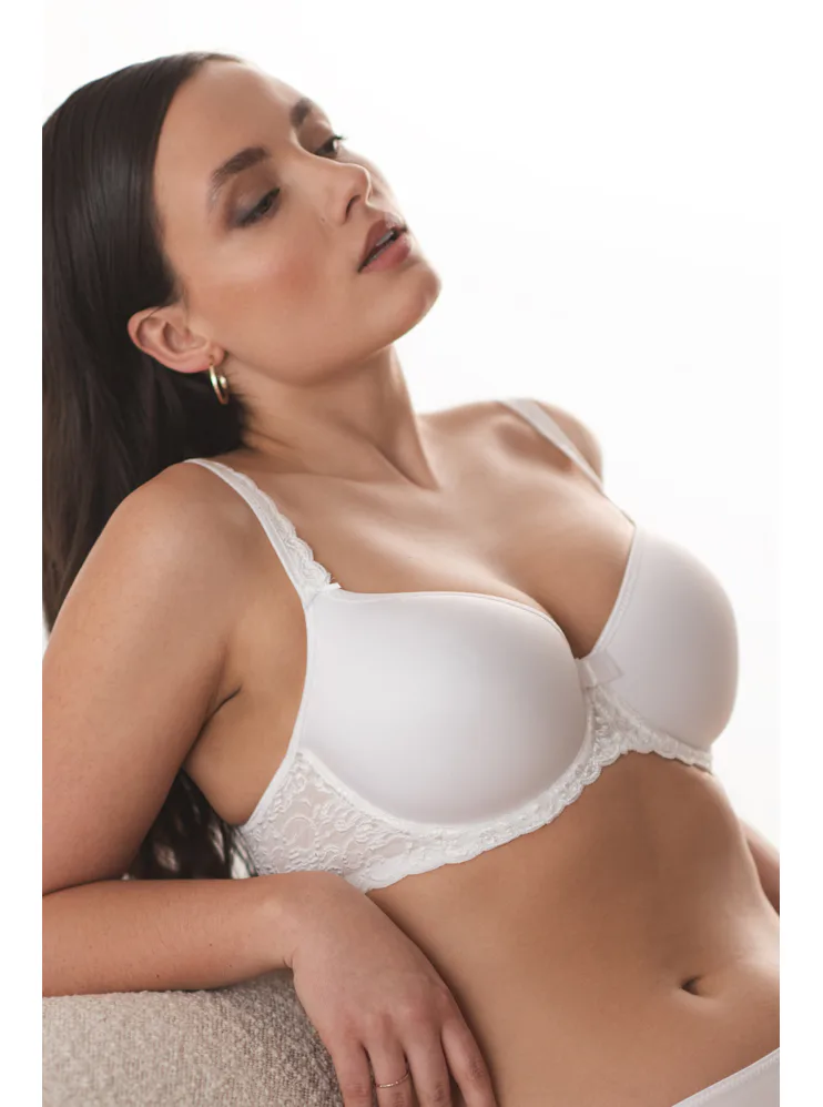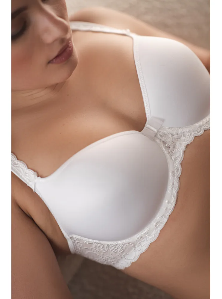 Vyztužená podprsenka má ultra měkké košíčky, které poskytují komfort při celodenním nošení. Zajistí přirozeně kulatý tvar poprsí a nijak neomazuje v pohybu. Všité flexi kostice nabízejí potřebnou oporu. Dopřejte si výjimečné pohodlí v bílé podprsence s romantickou krajkou.