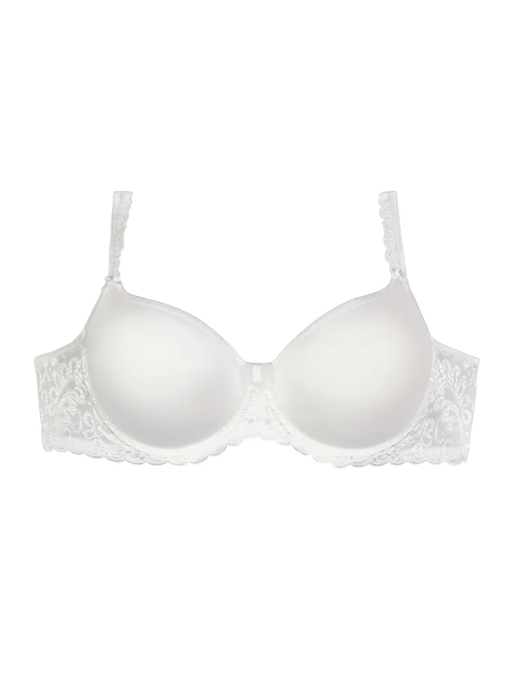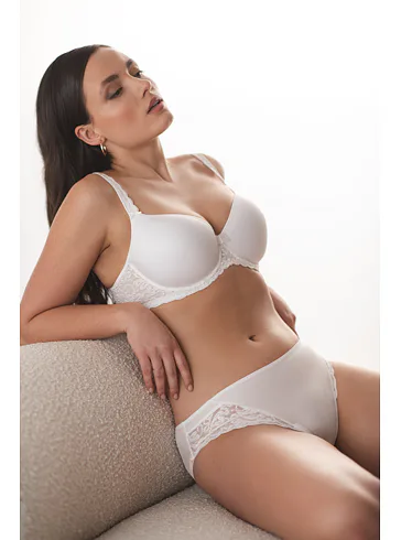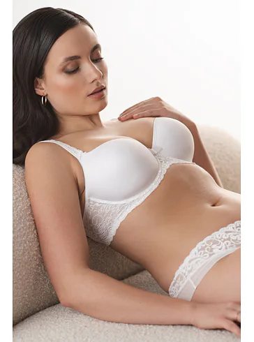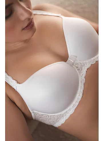 Vyztužená podprsenka s kosticemi ve střihu Sensual-Fit zafixuje poprsí v požadované výšce. Díky nižšímu středu vytvoří krásný dekolt a hladké koše se nerýsují pod oblečením. Ideální do hlubokých výstřihů. Obvod bílé podprsenky zdobí elastická krajka.