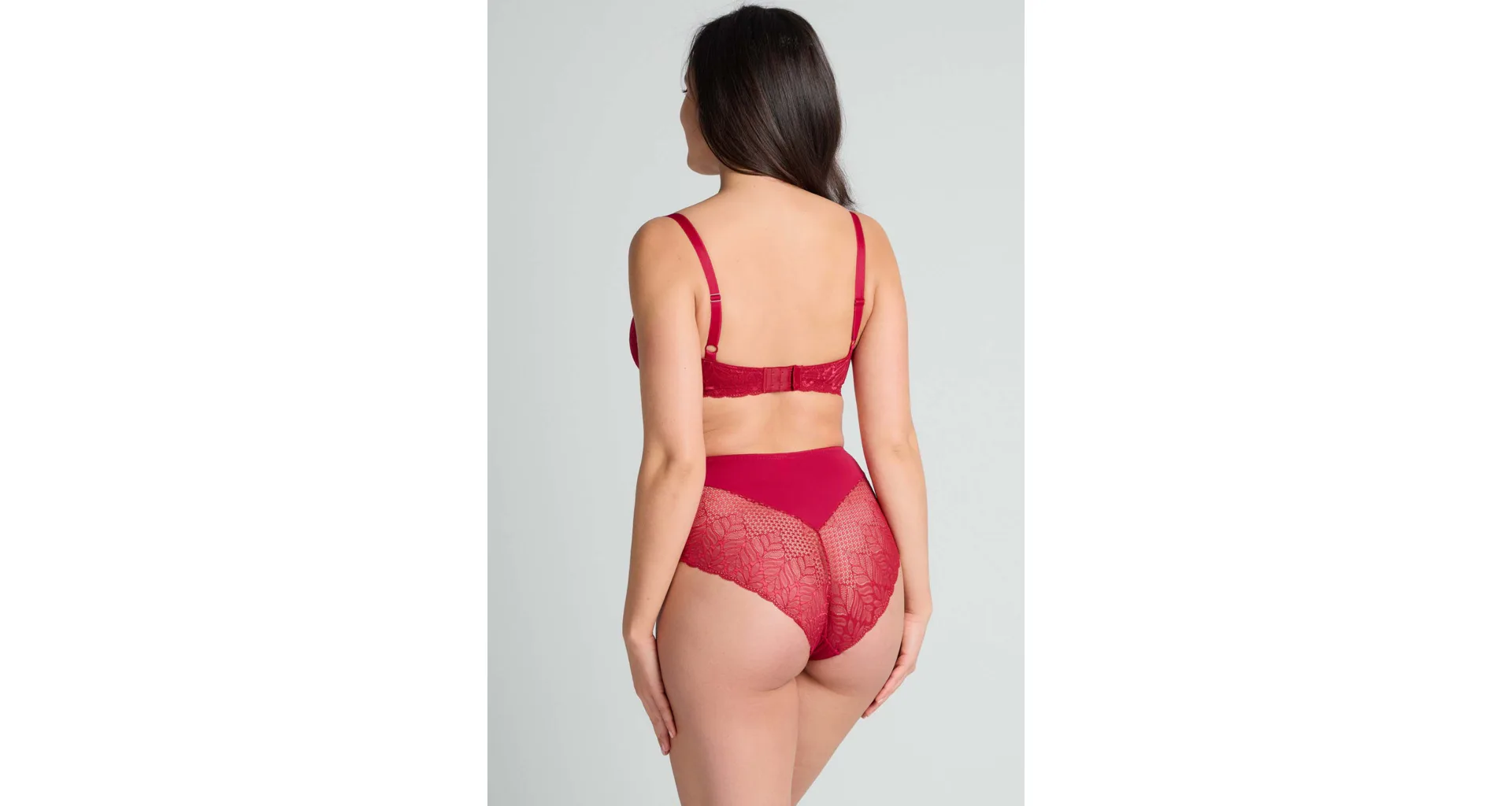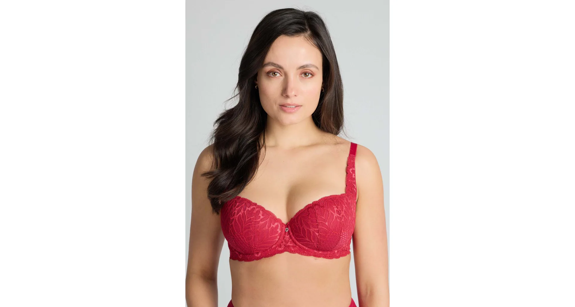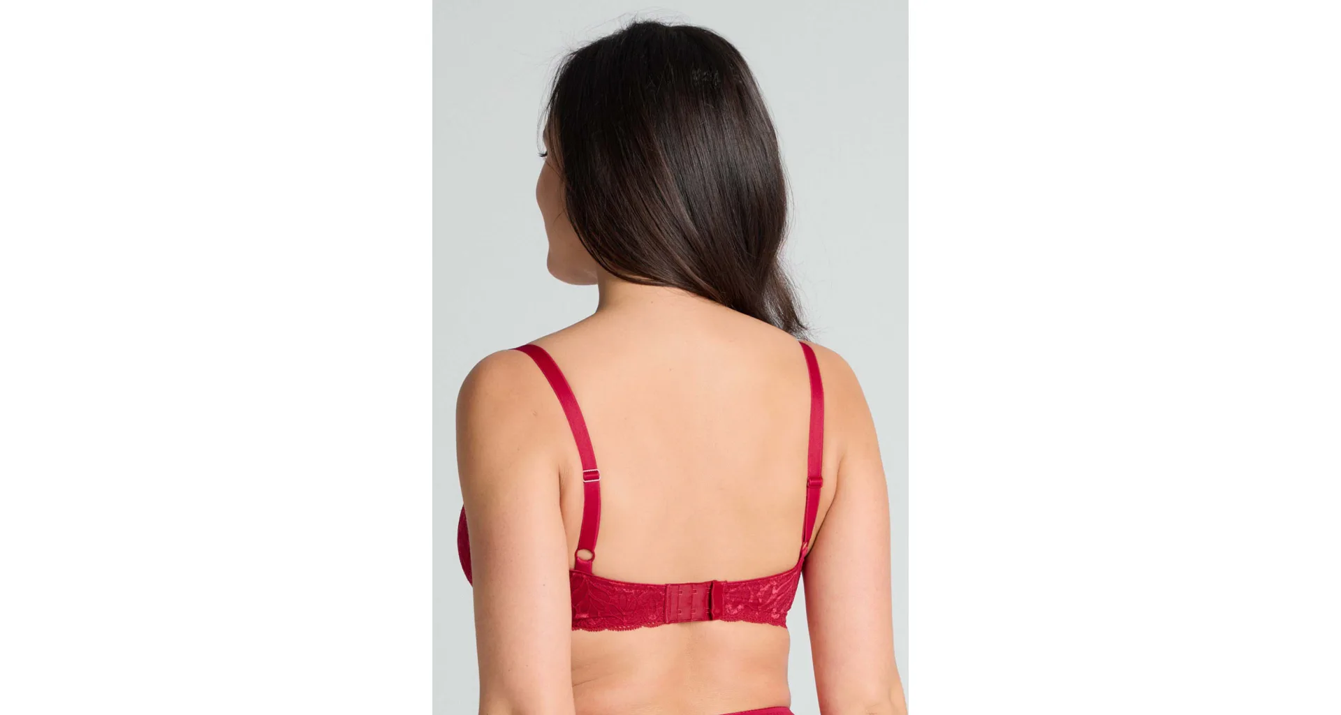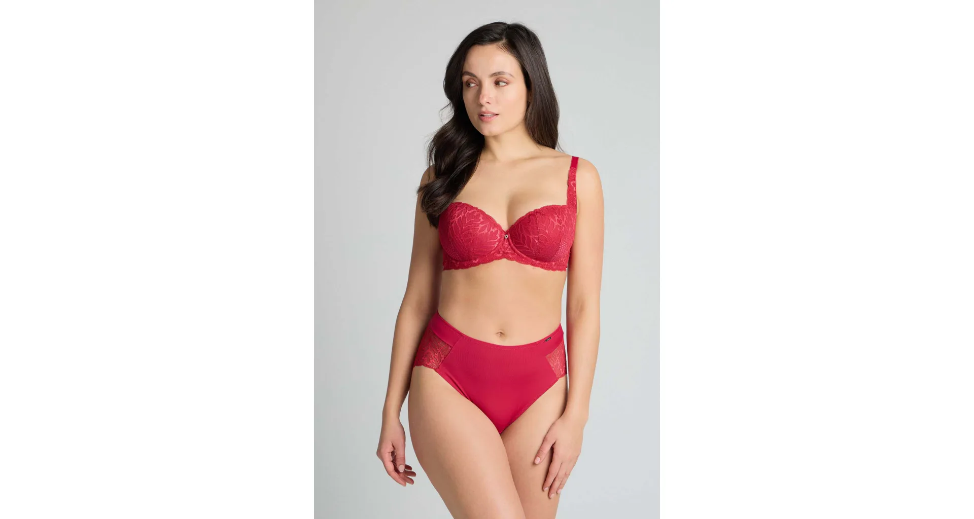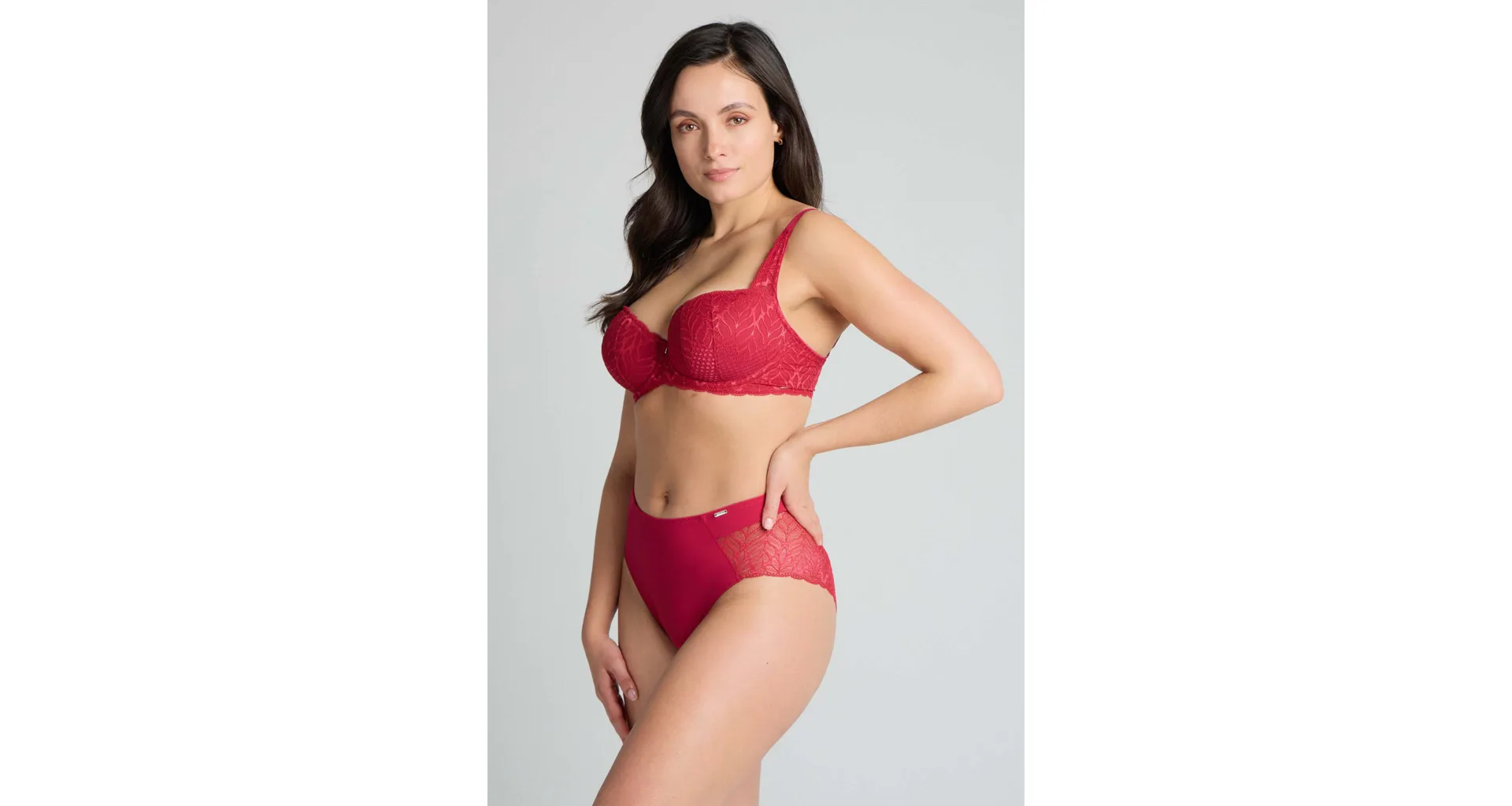 Podprsenka ve střihu balconette vytvoří hluboký a neodolatelný dekolt. Uchvátí luxusní krajkou s bohatým vzorem a temným odstínem červené barvy. Zajistí spolehlivou oporu a přizpůsobí se každému vašemu pohybu. Dokonalá volba pro každý den.