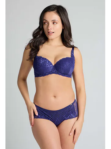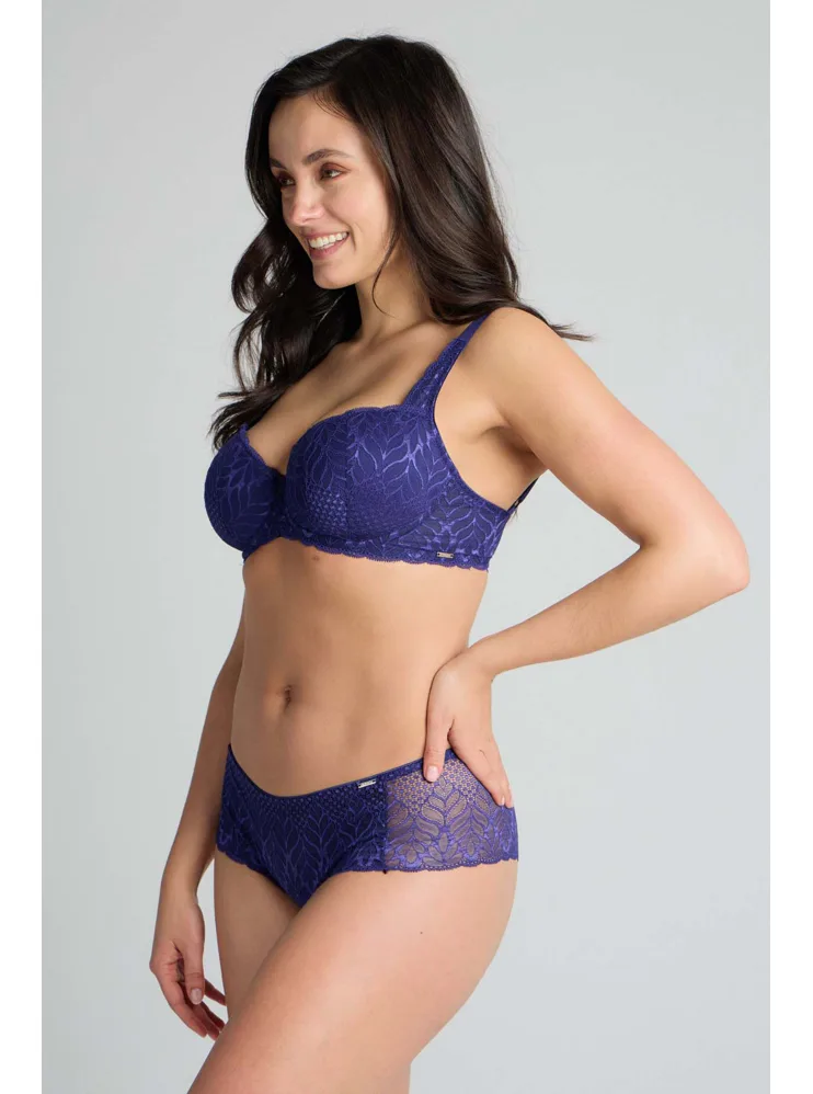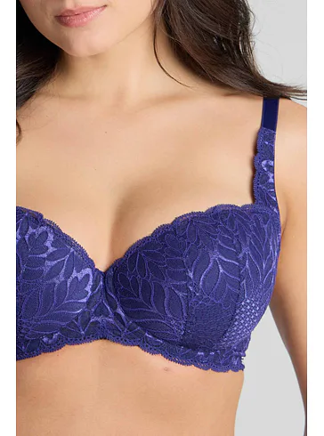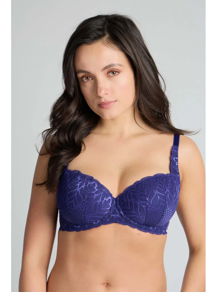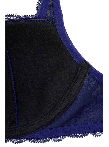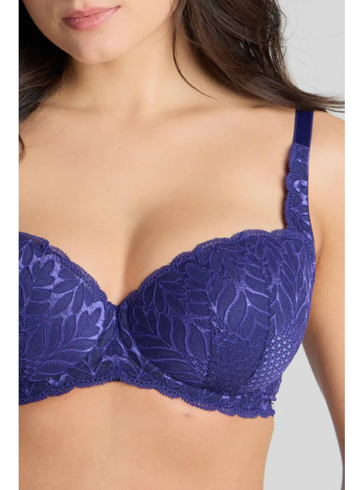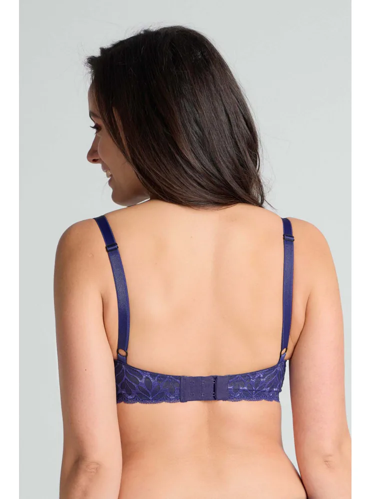 Získejte neodolatelný dekolt v tmavě modré podprsence balkonového střihu. Flexi kostice se přizpůsobí pohybu vašeho těla a poskytnou spolehlivou oporu. Okouzlí vás něžnou krajkou a fialovými odlesky. Dopřejte si dokonale padnoucí podprsenku Triola.