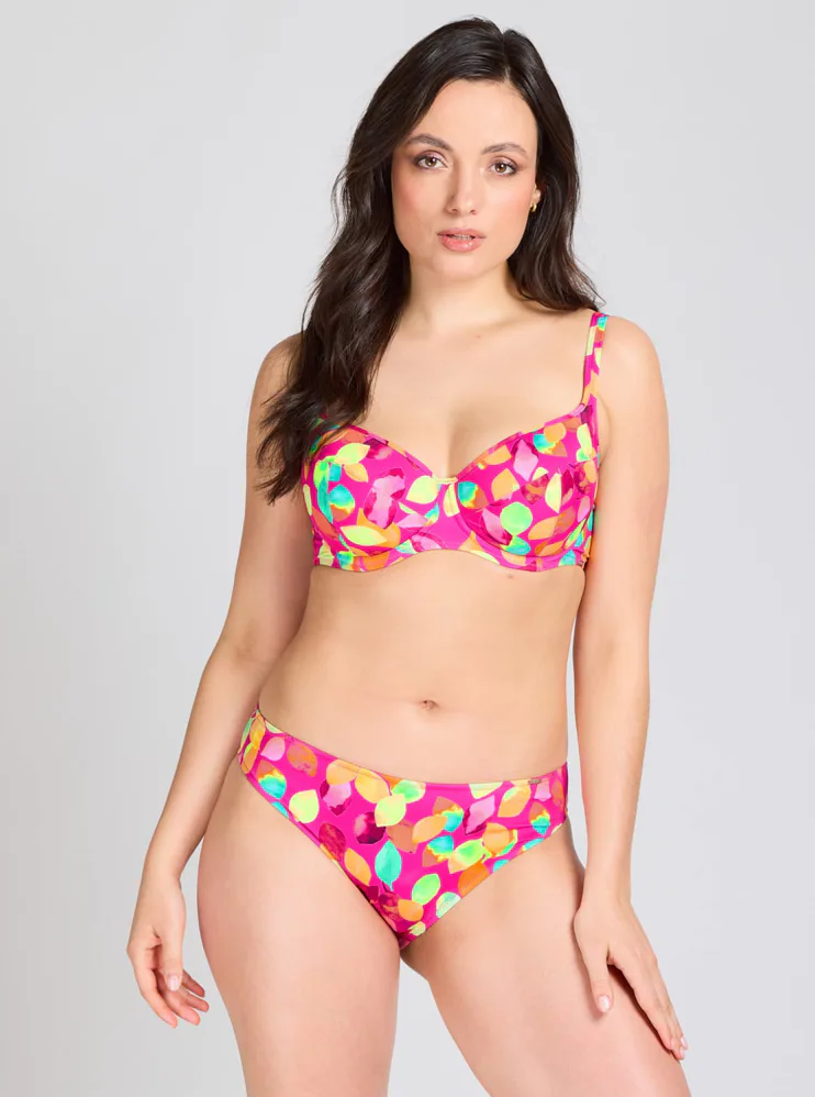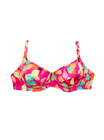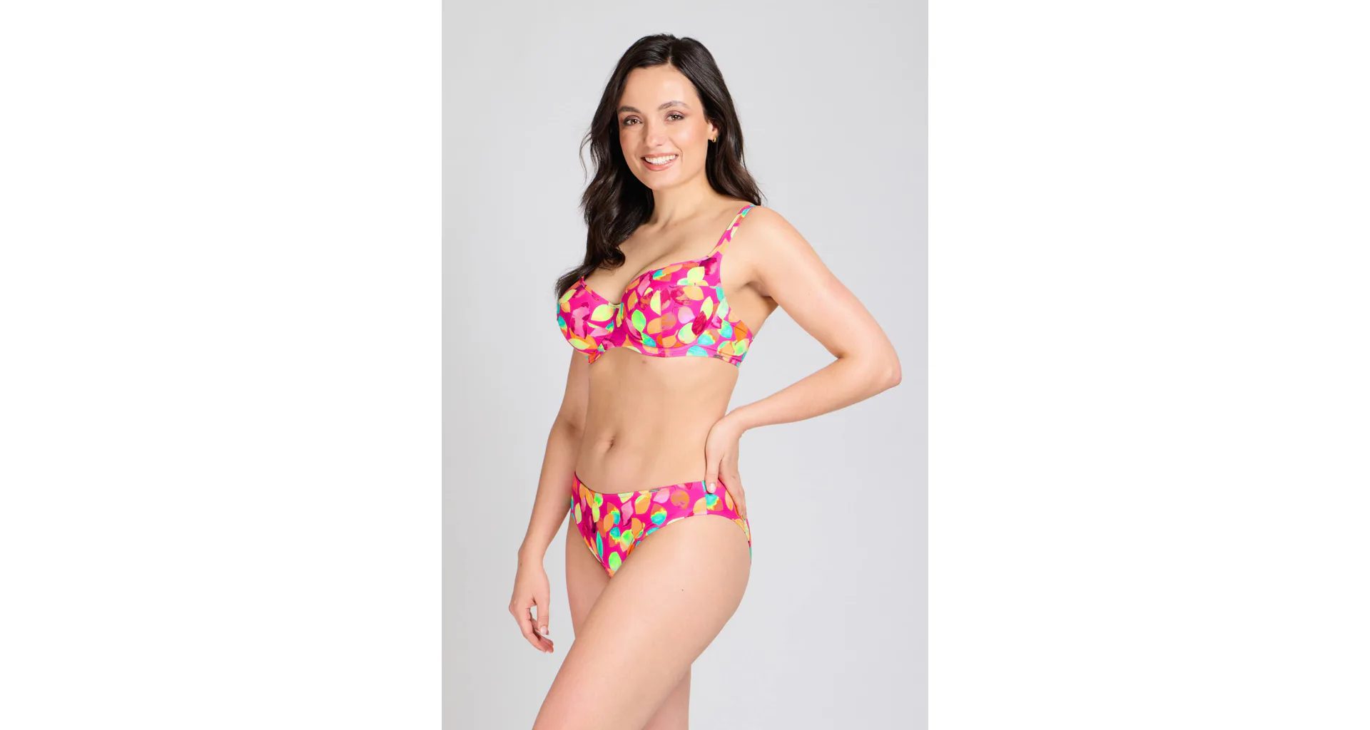 Vykročte do léta 2026 s novou kolekcí Triola. Plavková podprsenka s kosticemi ve střihu T-Fit vytvoří svůdný a přirozeně kulatý dekolt. Vysoký střed udrží prsa pevně na svém místě. Zaujme výrazným, hravým designem plným barev.
