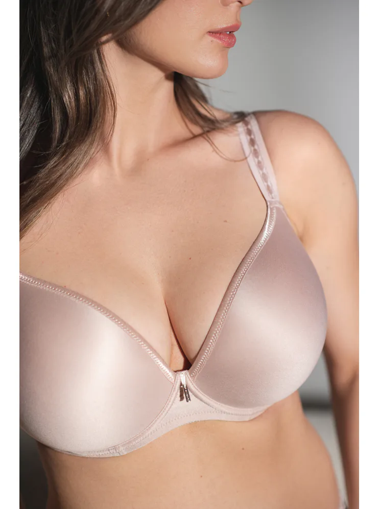 Růžová podprsenka zafixuje poprsí na středu a vykouzlí neodolatelný dekolt. Všité kostice poskytují potřebnou oporu a nijak neomezují v pohybu. Samozřejmostí jsou pohodlná nastavitelná ramínka a pevný obvod. Hladké koše se nerýsují pod oblečením. Skvělá volba pro každodenní nošení.