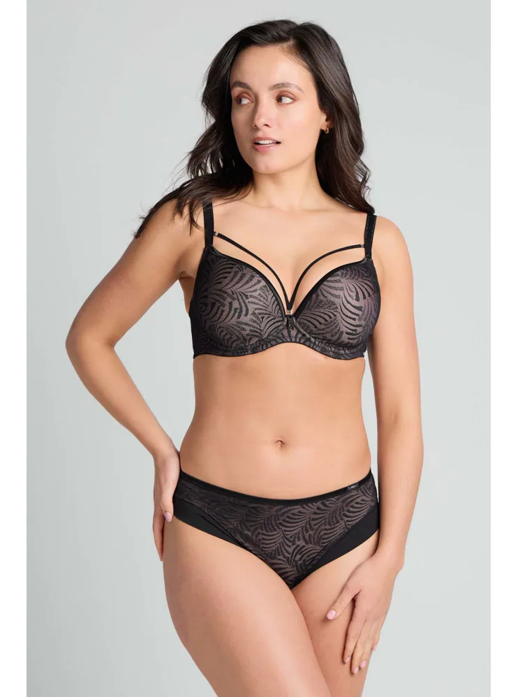 Vysoce atraktivní podprsenka je vhodná do hlubokých výstřihů. Kostice poskytnou potřebnou oporu a dokonale se přizpůsobí vašemu pohybu. Tence vyztužená podprsenka s nízkým středem zajistí dokonalý komfort při celodenním nošení. Pořiďte si k podprsence i kalhotky a získejte kompletní set.