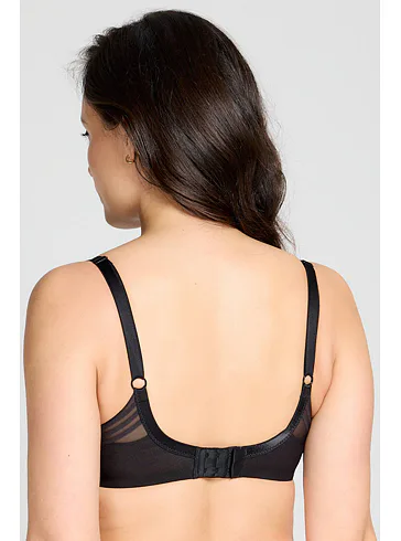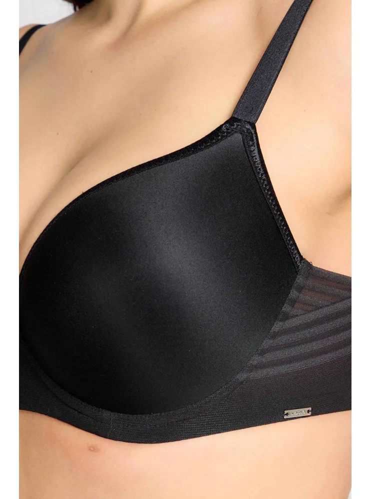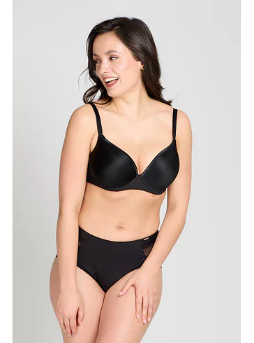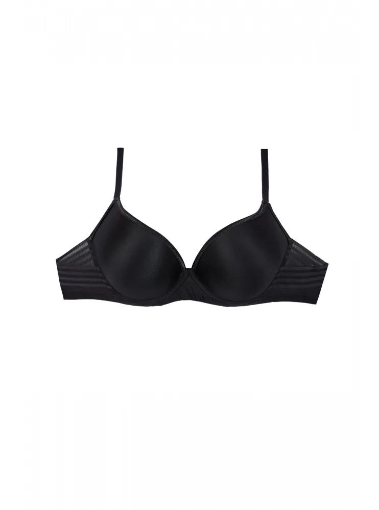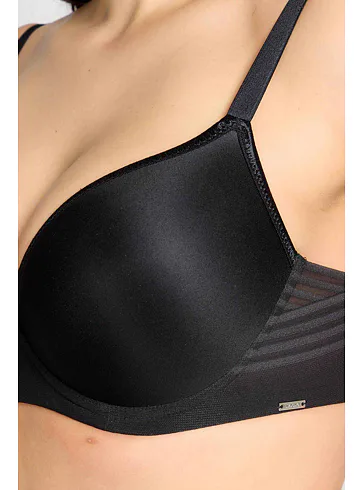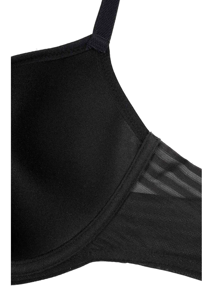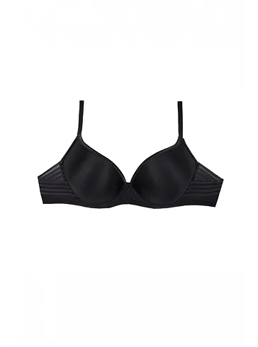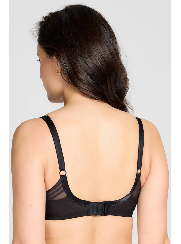 Černá tence vyztužená podprsenka má hladké, bezešvé koše, proto je perfektní volbou pod přiléhavé oblečení. Vykouzlí neodolatelný dekolt a poskytne spolehlivou oporu. Flexi kostice se přizpůsobí vašemu pohybu a skryté gumičky v dolním okraji podprsenky netlačí a nezařezávají se.