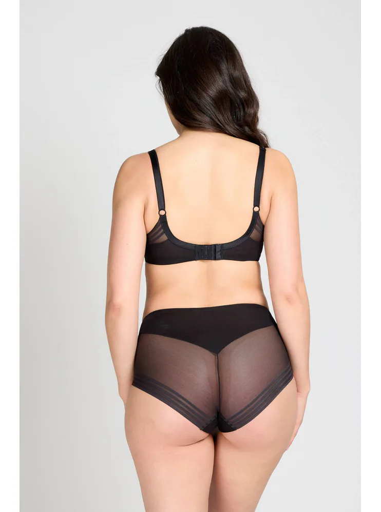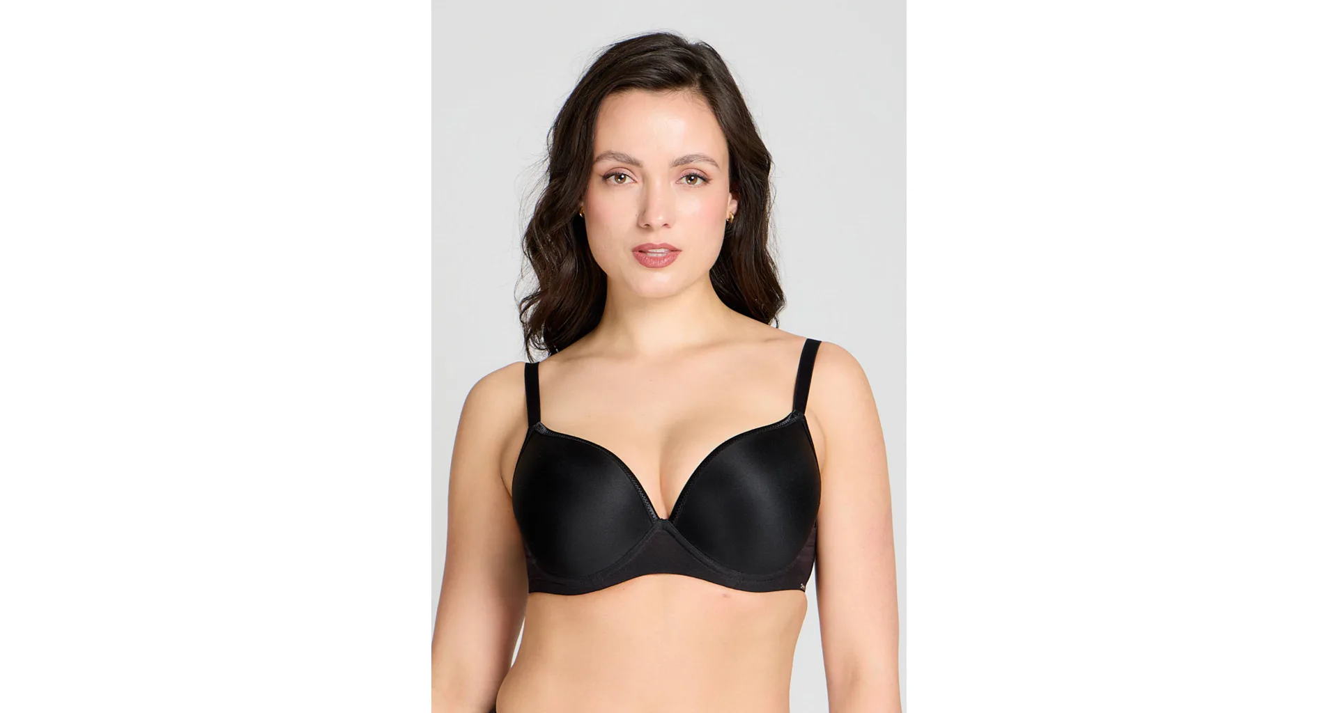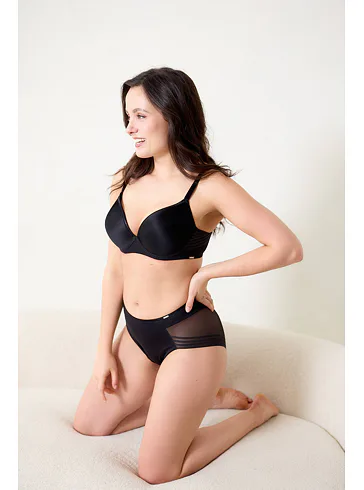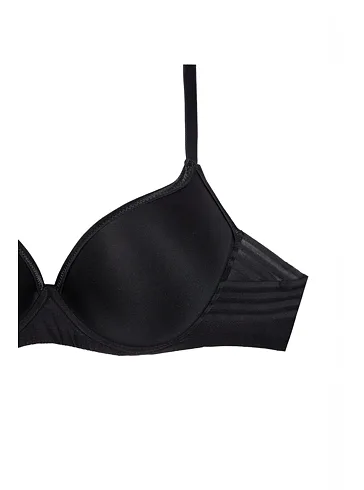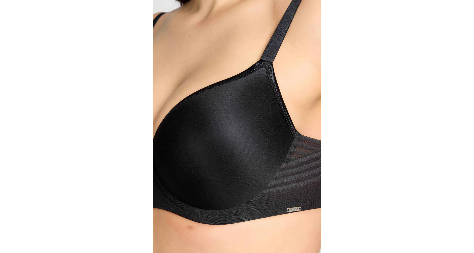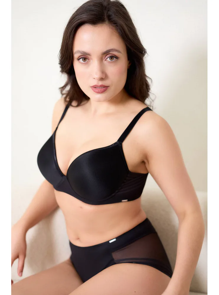Černá tence vyztužená podprsenka má hladké, bezešvé koše, proto je perfektní volbou pod přiléhavé oblečení. Vykouzlí neodolatelný dekolt a poskytne spolehlivou oporu. Flexi kostice se přizpůsobí vašemu pohybu a skryté gumičky v dolním okraji podprsenky netlačí a nezařezávají se.