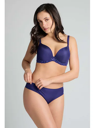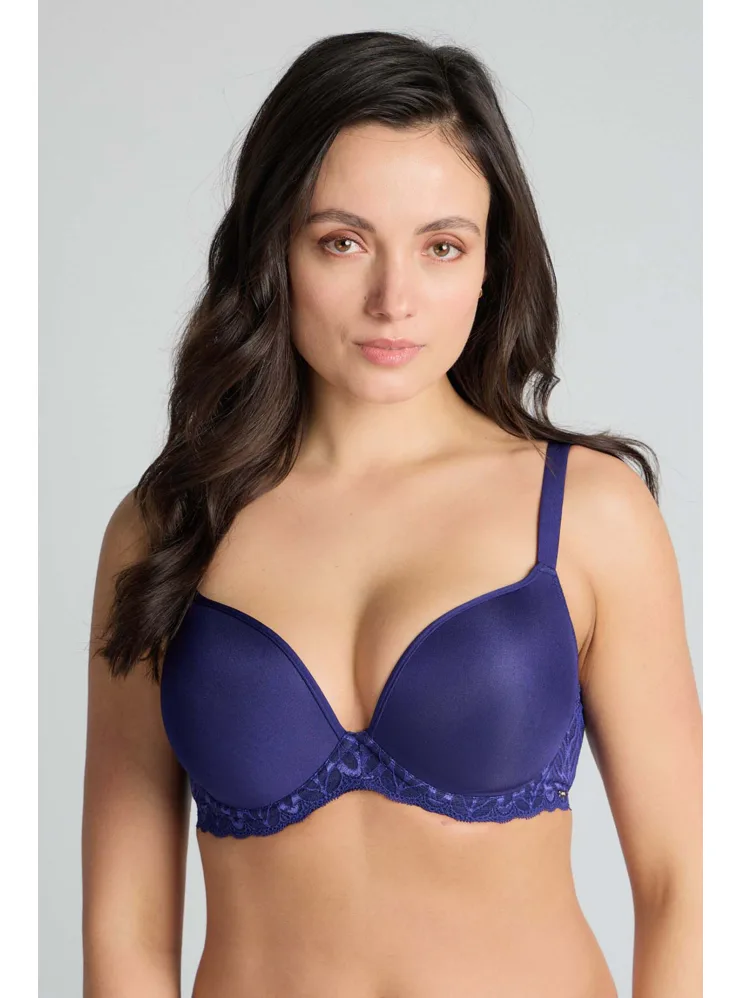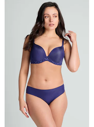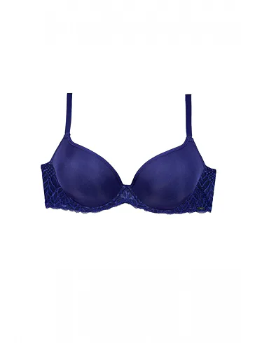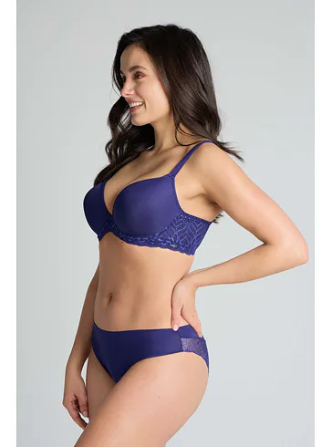 Krajková podprsenka je symbolem ženskosti a nikdy nevyjde z módy. Má bezešvé koše potažené hladkým úpletem s jemným leskem, zatímco obvod podprsenky zdobí luxusní krajka. Podprsenka s nízkým středem vás okouzlí temně modrým odstínem s fialovými odlesky a poskytne vám komfort při celodenním nošení.