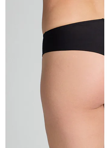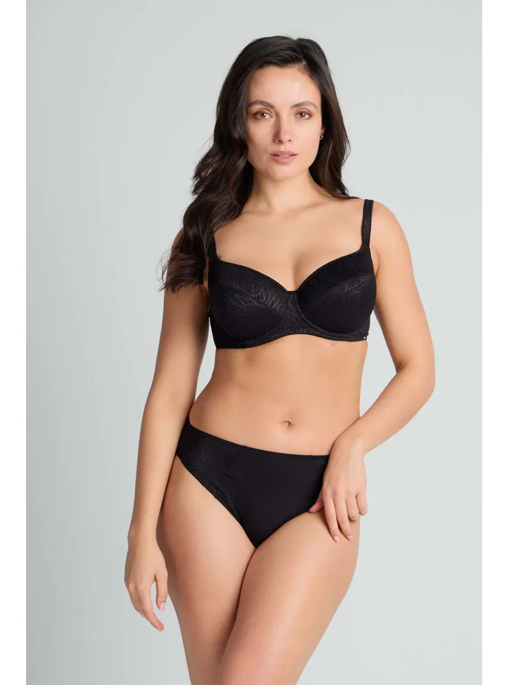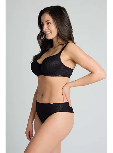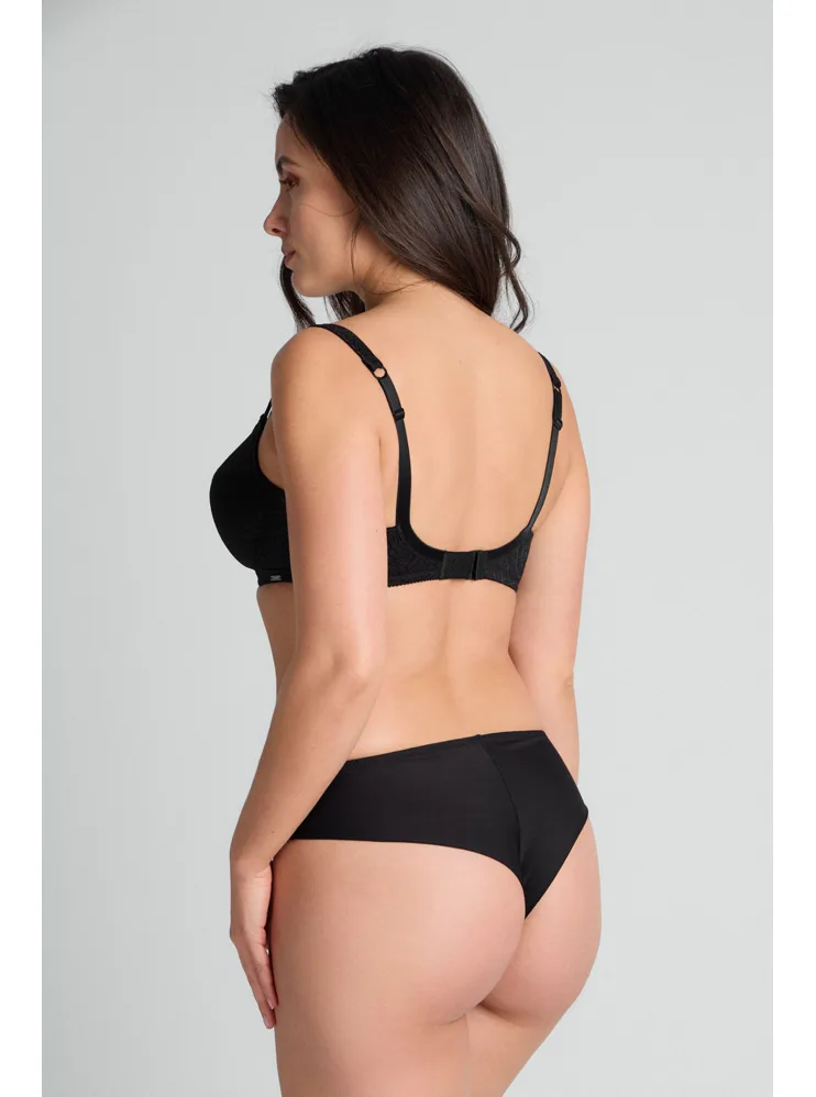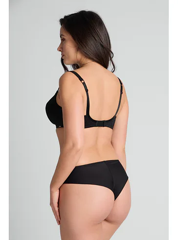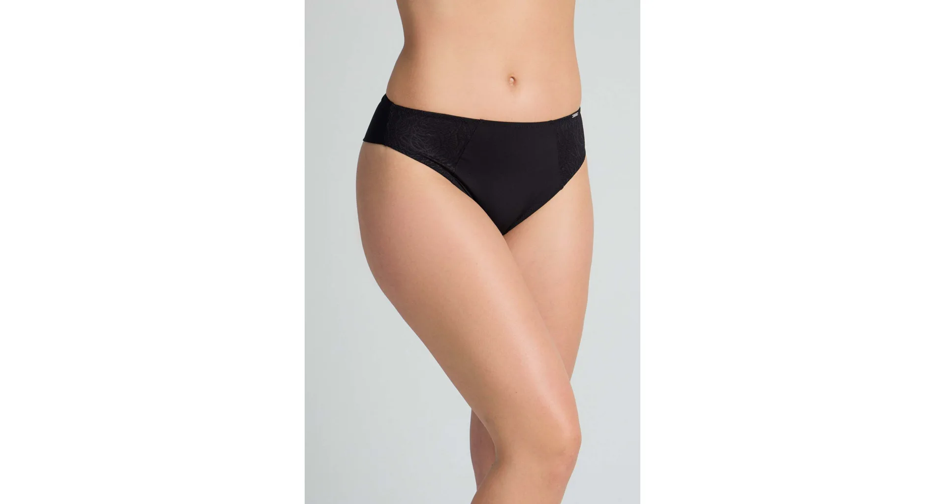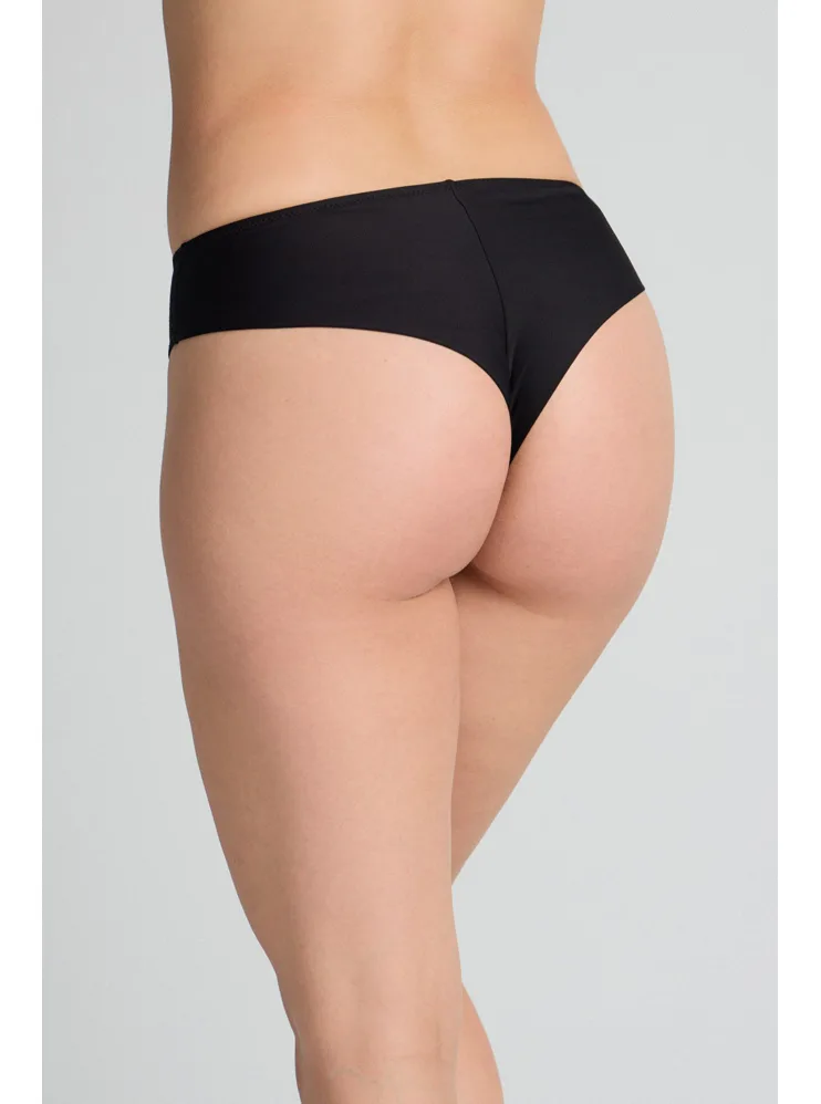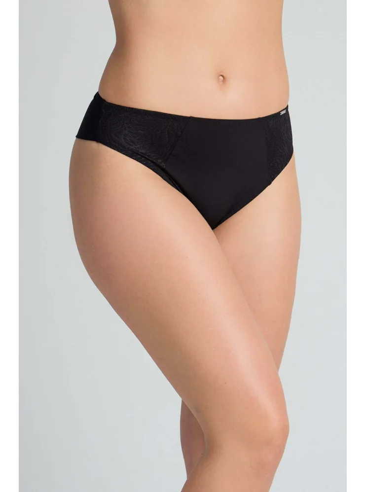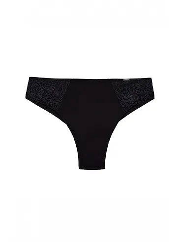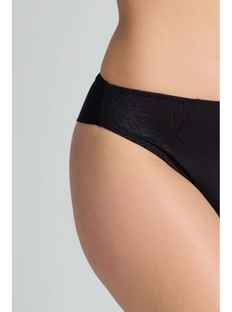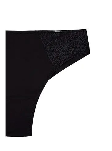 Brazilky mají hladký zadní díl, který se nerýsuje pod oblečením. Přední díl zdobí úplet s lesklými motivy. Vysoký pas schová problematickou oblast bříška a opticky prodlouží nohy. V brazilkách se budete cítit komfortně a sebevědomě.