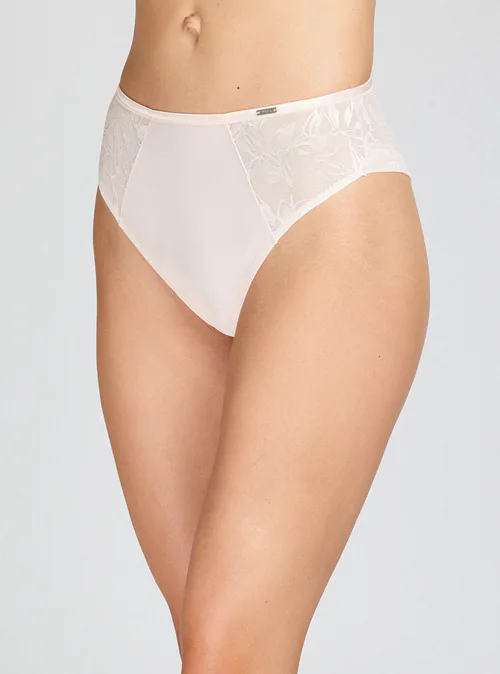 Brazilky vysokého střihu zakryjí oblast bříška a opticky prodlouží nohy. Perfektně se přizpůsobí vašim křivkám a vytvoří lichotivou siluetu. Přední díl zdobí úplet s lesklými motivy, hladký zadní díl se nerýsuje pod oblečením.