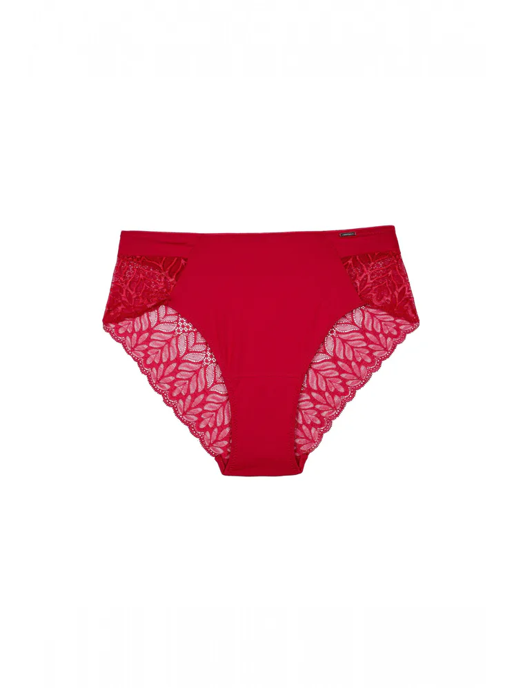 Rafinované vysoké kalhotky skvěle padnou a zakryjí bříško. Lichotí každé postavě a zajistí pohodlí při celodenním nošení. Zadní díl zaujme smyslnou krajkou. Pořiďte si vášnivě červené kalhotky, ve kterých se budete cítit atraktivně a sebevědomě.