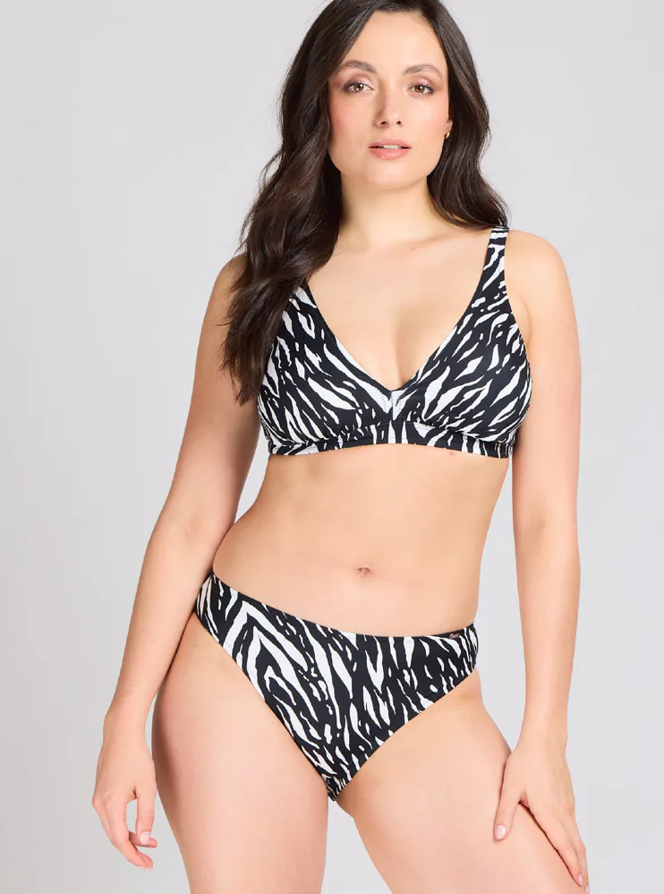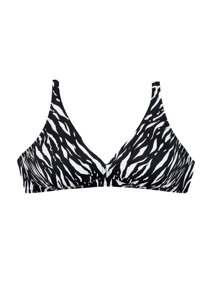 Plavková podprsenka nijak neomezuje v pohybu a dokonale se přizpůsobí vašim křivkám. Variabilní ramínka zapnete klasicky, do kříže nebo zavážete za krkem. Plavky zaujmou na první pohled výrazným černo-bílým vzorem, který působí moderně a energicky.
