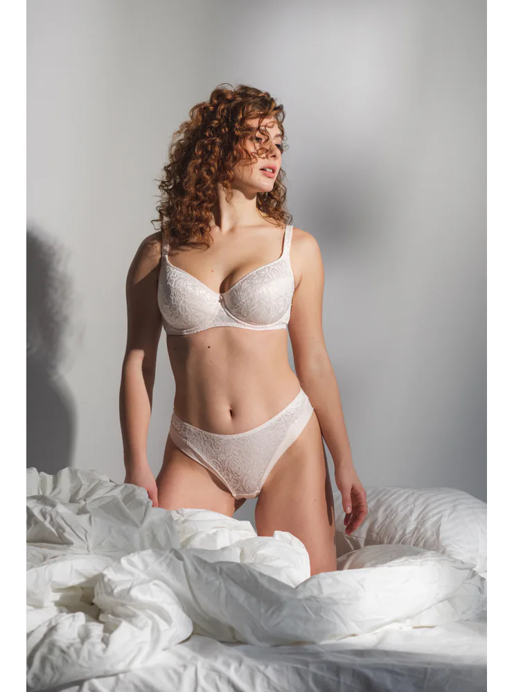 Hladká dámská podprsenka působí luxusně a poskytuje komfort při celodenním nošení. Krásně zakulatí prsa a podtrhne vaše přirozené křivky. Vyzkoušejte tence vyztuženou pudrovou podprsenku s kosticemi, ve které se budete cítit sebevědomě a atraktivně.