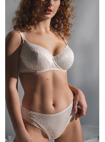 Vyztužená podprsenka v oblíbeném střihu T-Fit vytvoří neodolatelný dekolt. Vyrobena je z exkluzivního žakárového úpletu s vysokým leskem. Tence vyztužené košíčky zajistí přirozeně kulatý tvar prsou. Pevné zapínání má vzadu na 2 háčky.