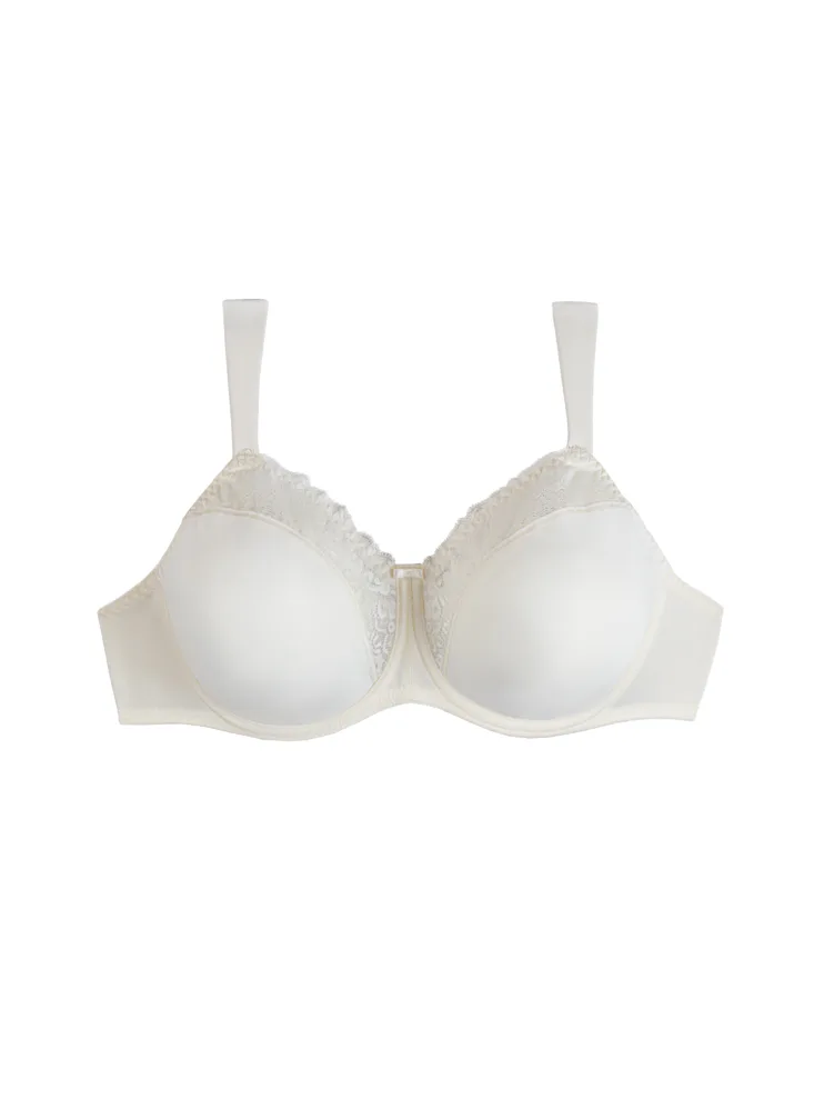 Nevyztužená podprsenka opticky zmenší poprsí až o jednu velikost. Zaujme krajkovými detaily na horní linii košíčků, které jí dodávají romantický vzhled. Bílá podprsenka poskytne spolehlivou oporu a komfort při celodenním nošení.