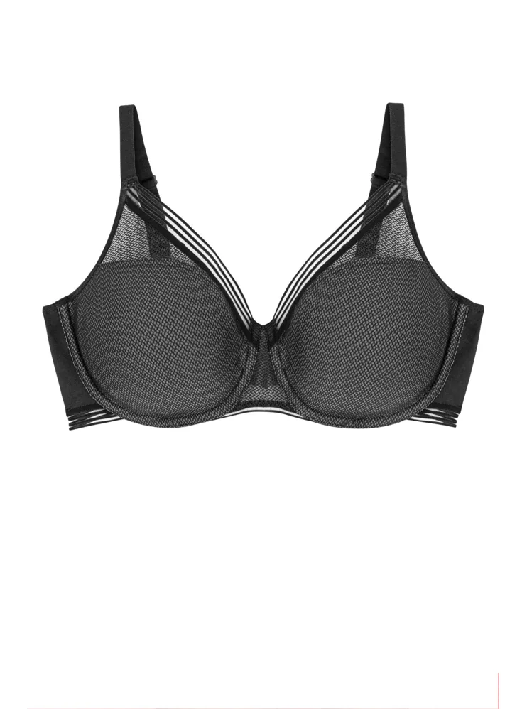 Černá podprsenka s 3D kosticemi se perfektně přizpůsobí vašim pohybům, udrží poprsí pevně na svém místě a netlačí při dlouhodobém nošení. Košíčky z jemného mikrovlákna jsou lemovány žerzejem. Ramínka lze nastavit dle potřeby a zapínání má klasicky vzadu na dva háčky se třemi polohami stažení, u větších velikostí je podprsenka vybavena zapínáním na tři háčky pro lepší oporu a pohodlí.