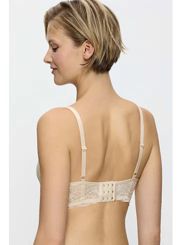 Objevte kombinaci elegantní krajky a maximálního komfortu. Béžová podprsenka bez kostic nabízí svobodu pohybu. Zapíná se vzadu na tři háčky a má praktická posuvná ramínka. Krásně zvýrazní dekolt a je vhodná jak na každodenní nošení, tak i pro speciální příležitosti.