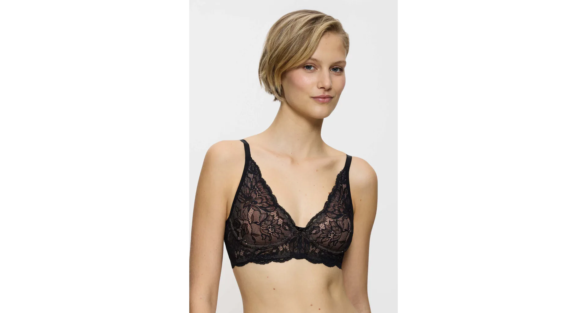 Perfektně sedí a zároveň poskytne dostatečnou oporu. Svůdná podprsenka bez kostic se přizpůsobí tvaru vašich prsou a zajistí maximální pohodlí po celý den. Upoutá pozornost výstřihem do V a sexy krajkou.
